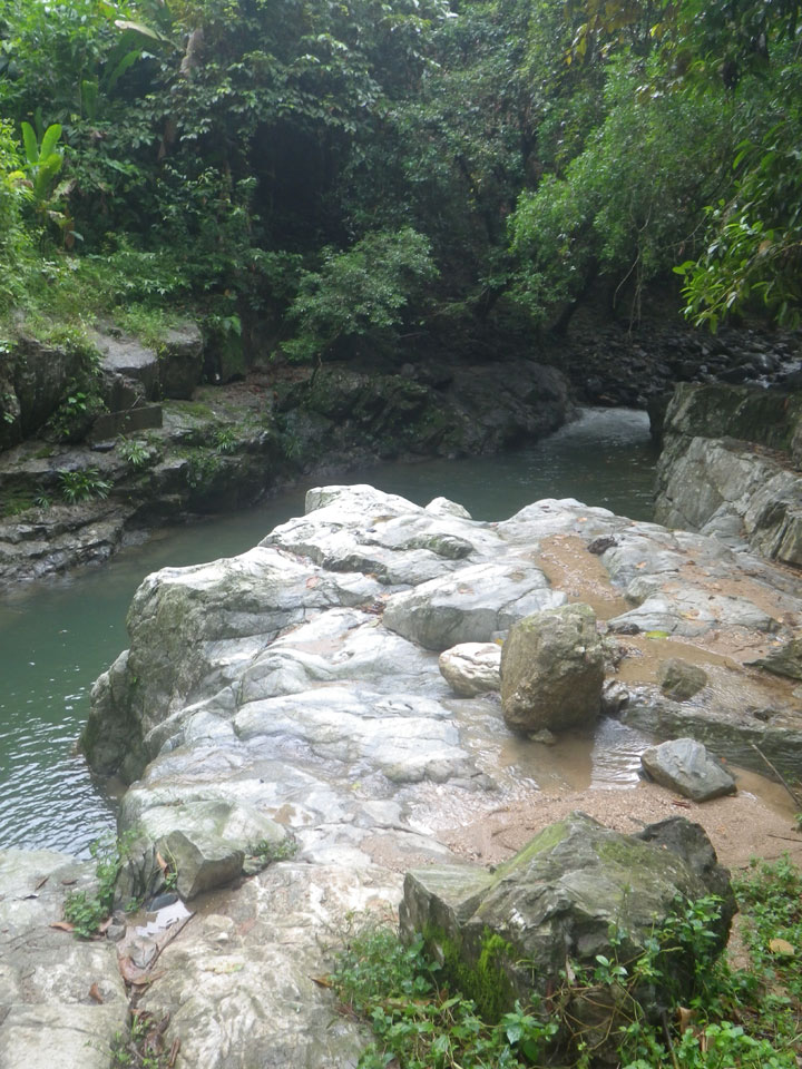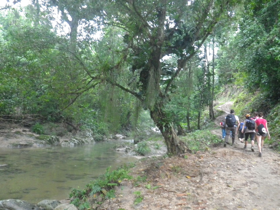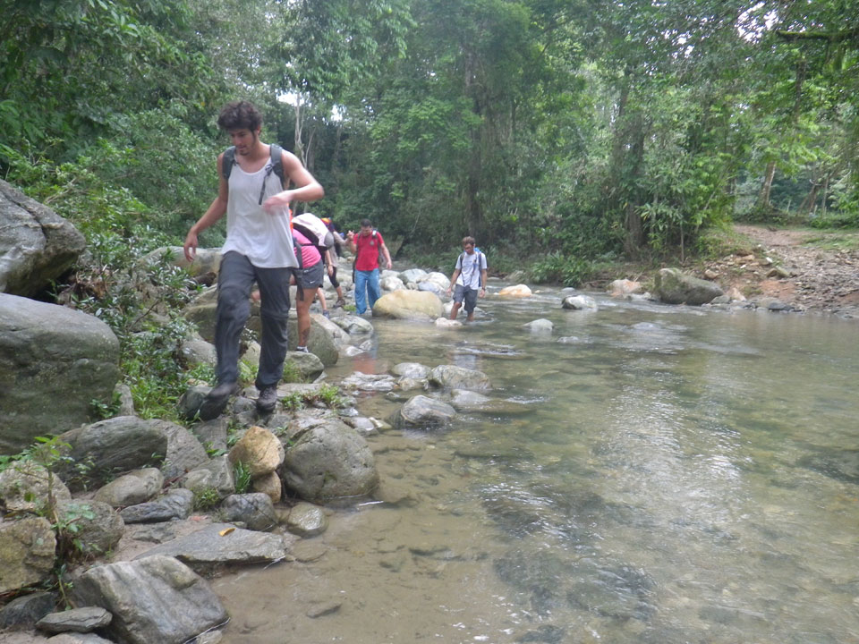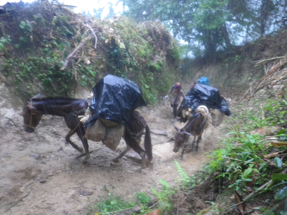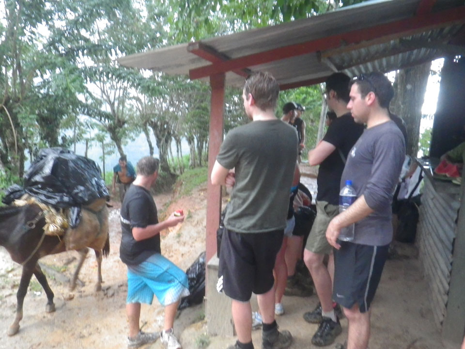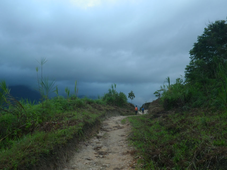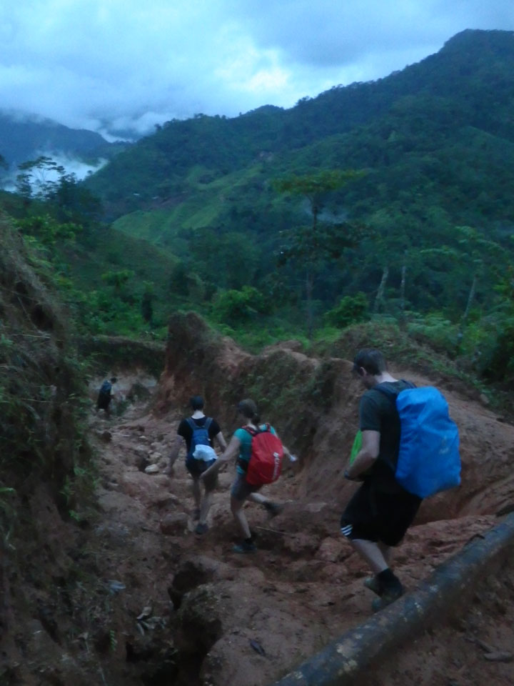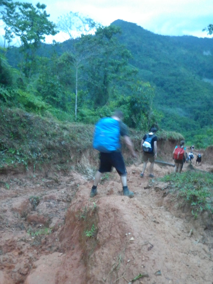 Uns wurde der Weg erklärt. Die Entfernungen sind relativ gering. Die Anstrengung kommt durch das unwegsame Gelände. Das wurde mir dann auch schnell klar denn es wurde schlammig, steinig und ging auch durch kleine Flüsse. Zwischendurch hatten wir kleine Stopps, bekamen Orangen als Snack.