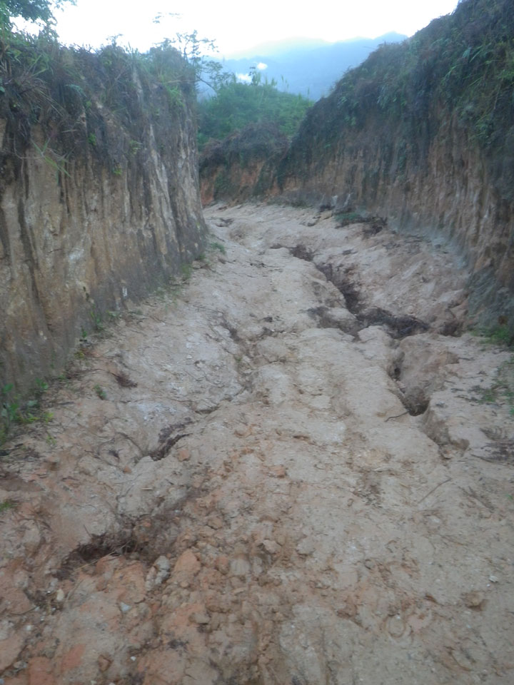 Auf halben Weg war die Straße zu, ein Laster war in der Gegenrichtung liegen geblieben. Der Fahrer hatte schon angefangen, sich freizuschaufeln. Erst mit der Hilfe von gut 10 Leute, pushten wir ihn aus seiner Schlammgrube und wir konnten weiter.