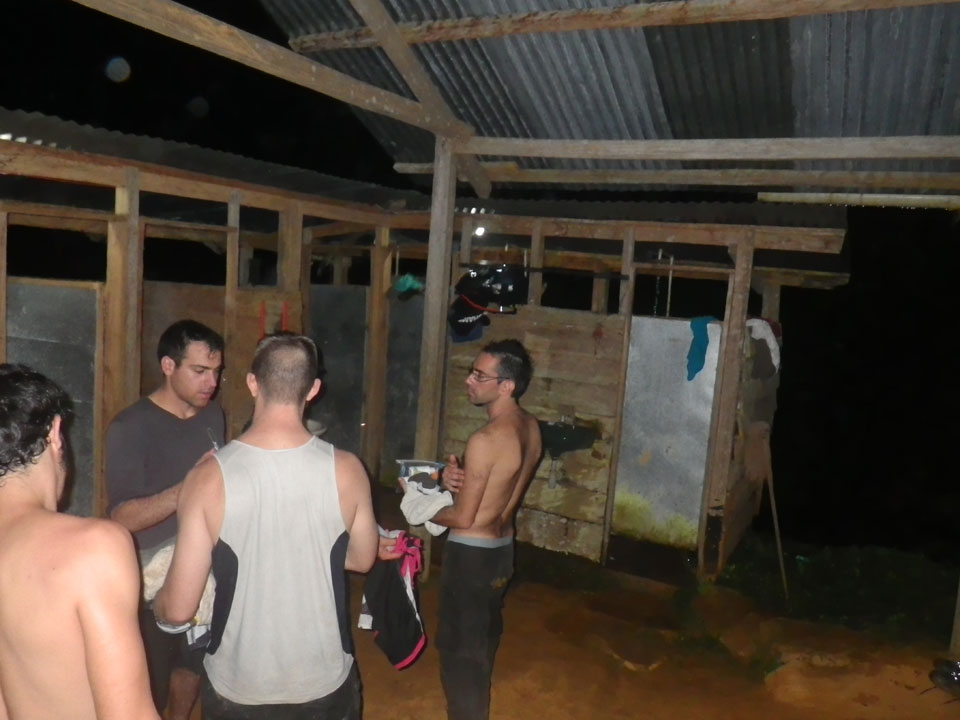 Am Ende des Tages kamen wir an unserem Schlafplatz an. 3 Duschen, Tausende Mücken und geduldiges Warten auf das kalte Wasser. Das Abendessen schmeckte dann umso besser. Am Ende noch was zu rauchen dank Israel. Ein netter Tag und ab in die Hängematte. Ich schlief gut ein. Morgen wird’s schwerer.