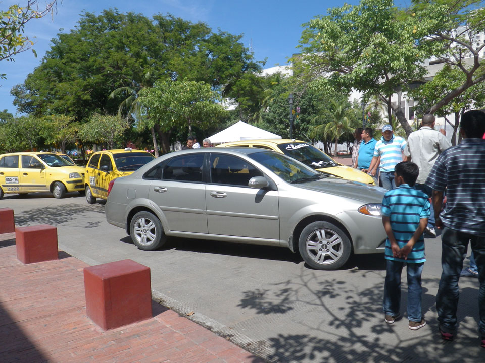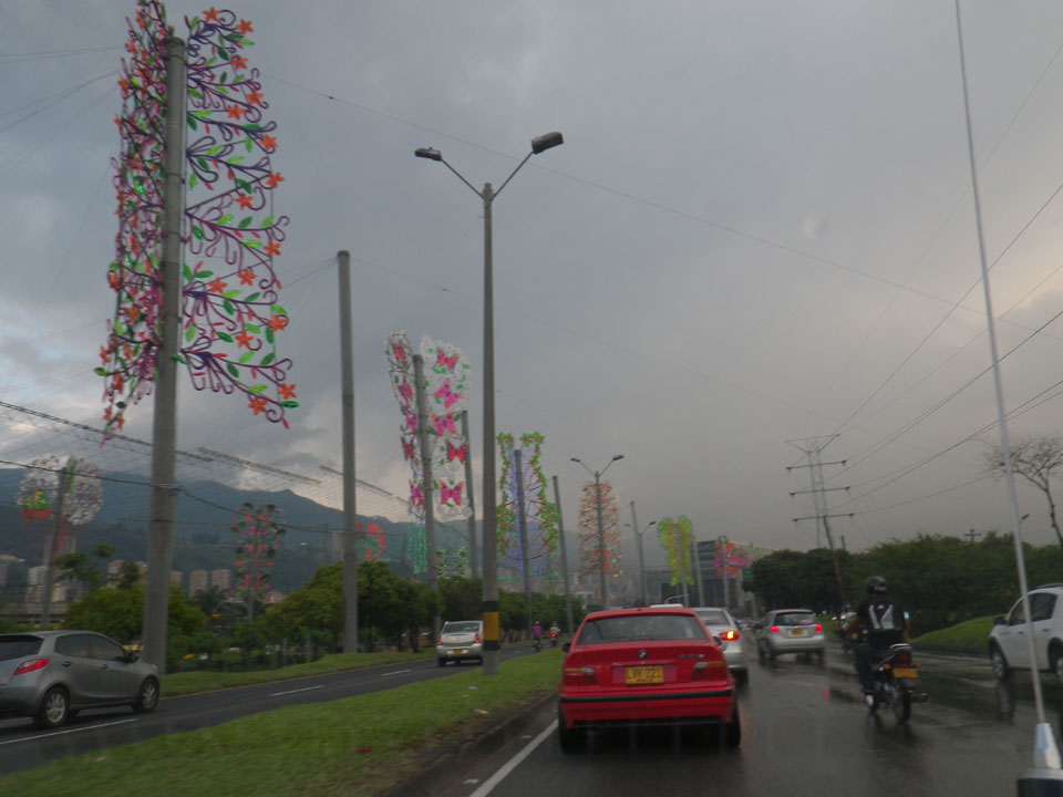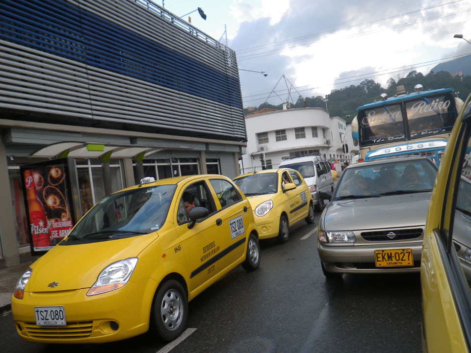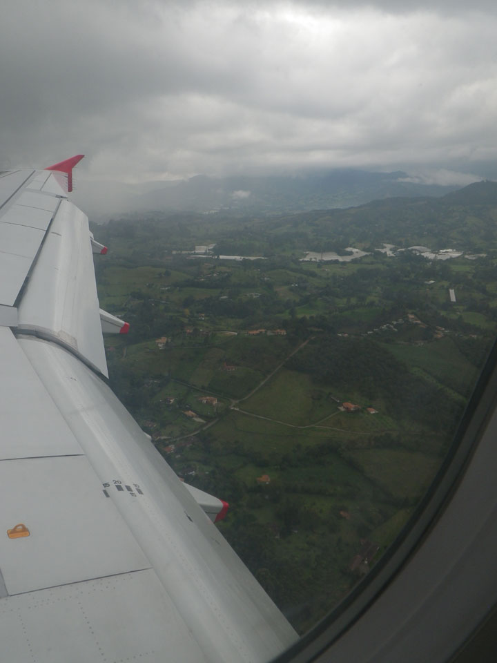 Ein Unfall brachte Stau und keine Taxis in meine Richtung. Ich hatte gut Zeit und fuhr dann die ca. 30′ zum Flughafen (COP 20.000 = €8).
