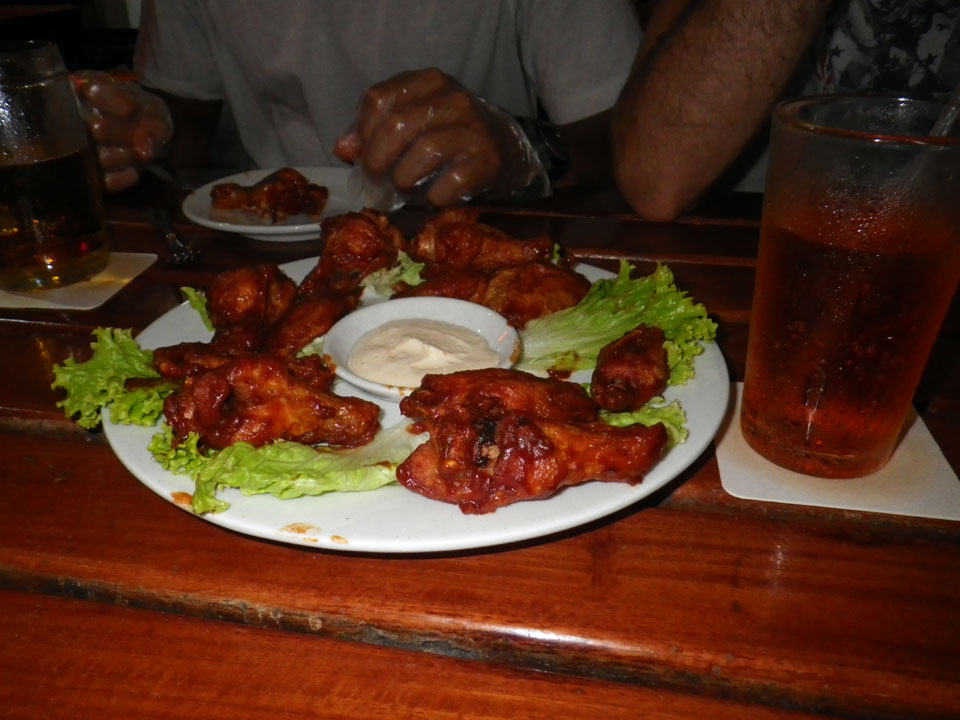 Morgen wird das wohl nichts, denn wir wollen einen Ausflug an der Küste machen. Abends gingen wir was essen, im CafeCafé die Pizza und Wings. Die Wings gibt’s mit Plastik-Handschuhen, damit man sich nicht bekleckern. Die Pizza schmeckte mir. Heute aber kein Bier – Null Alkohol musste sein.