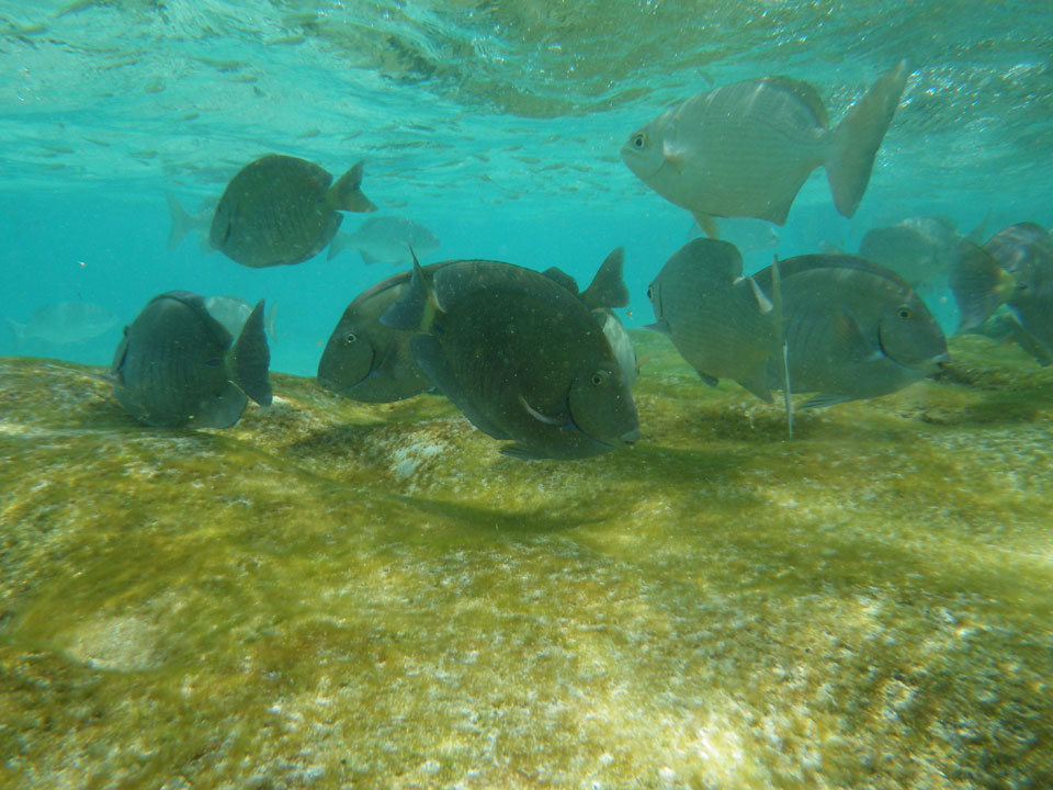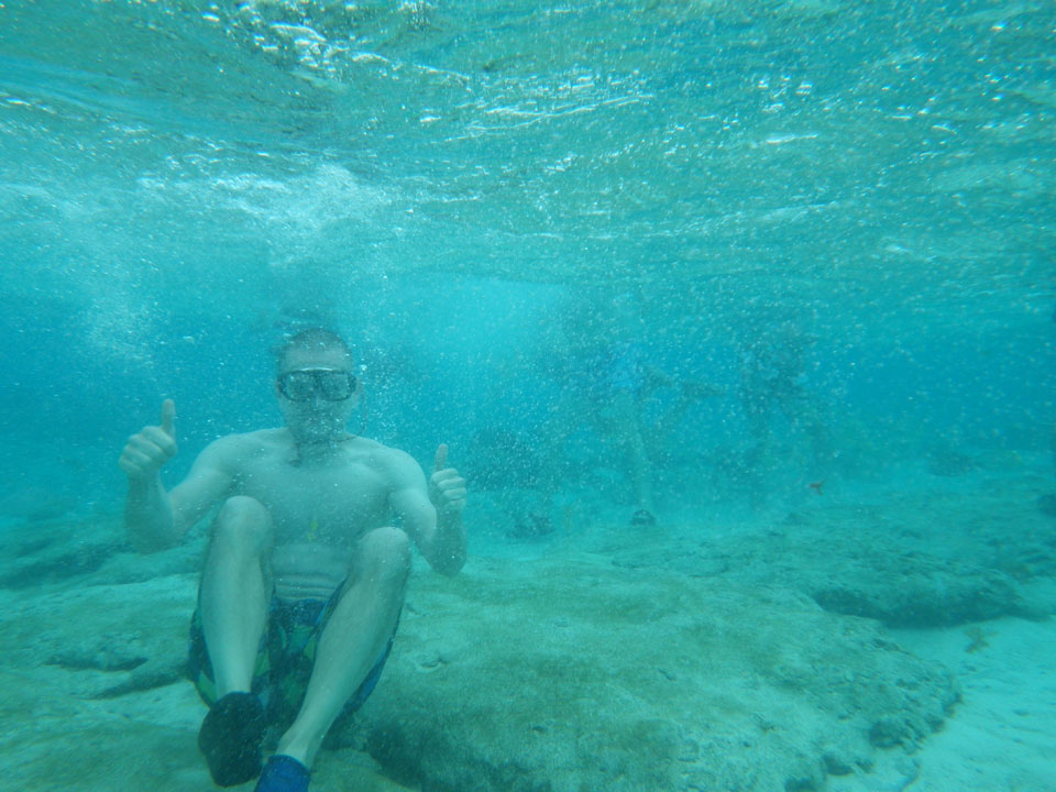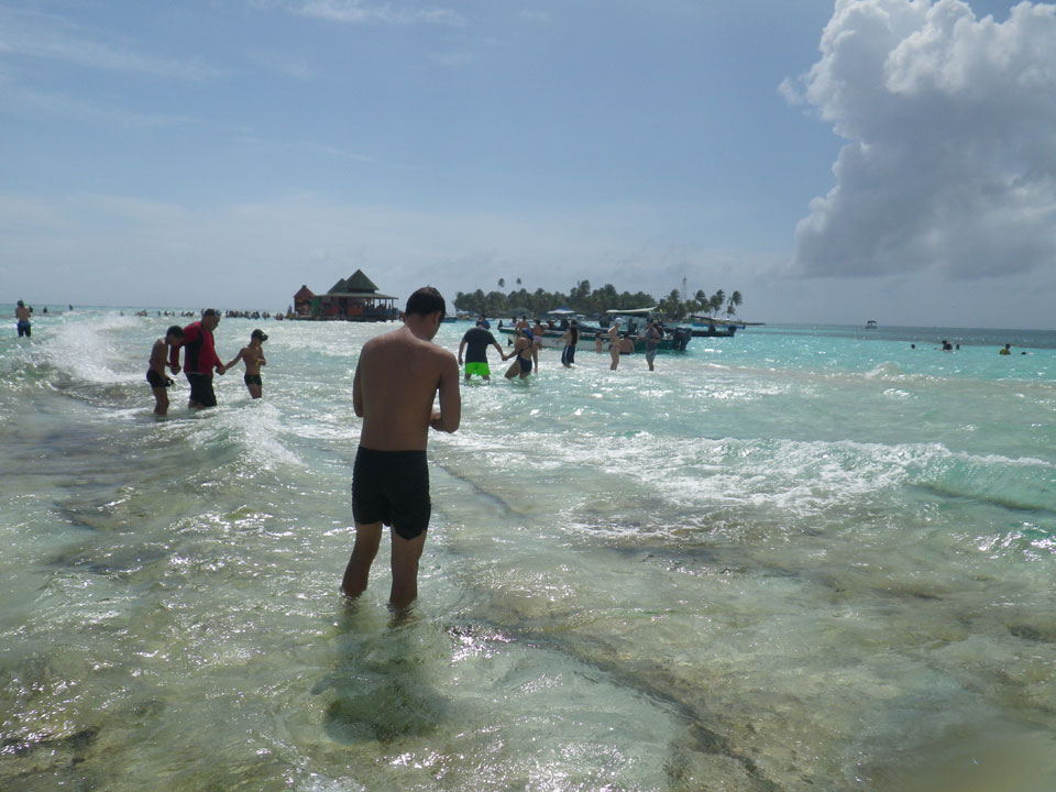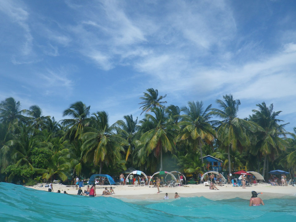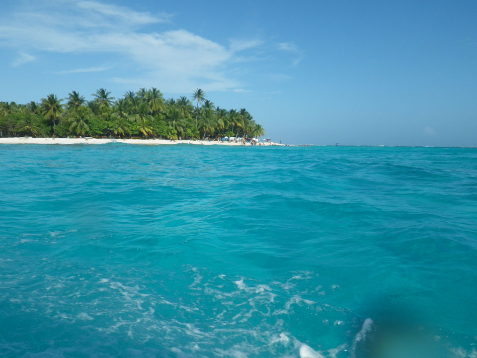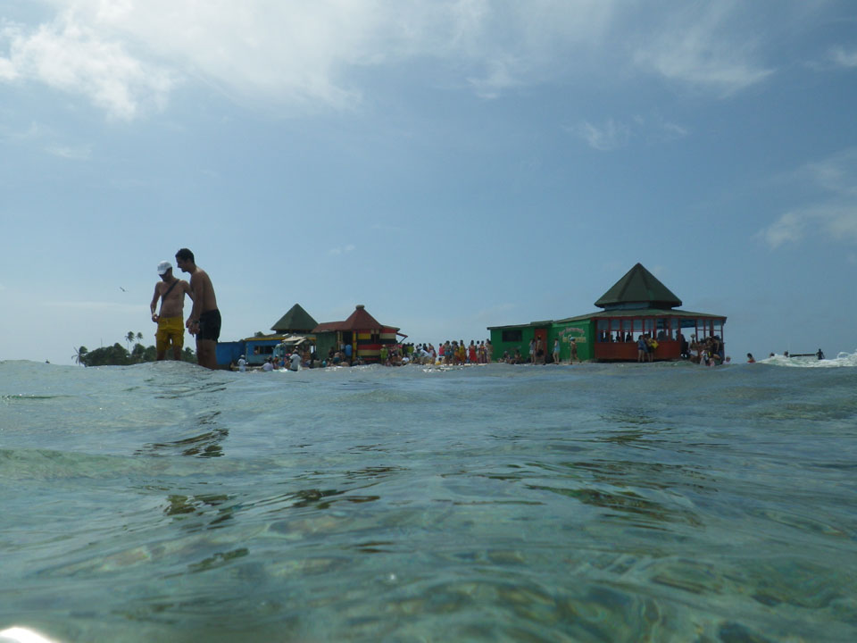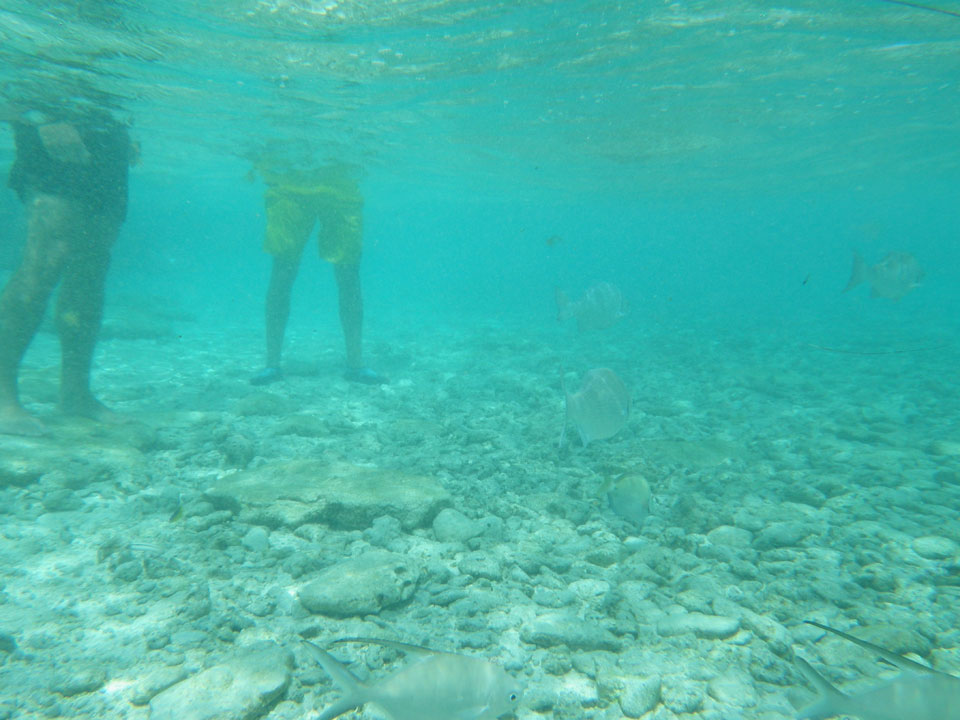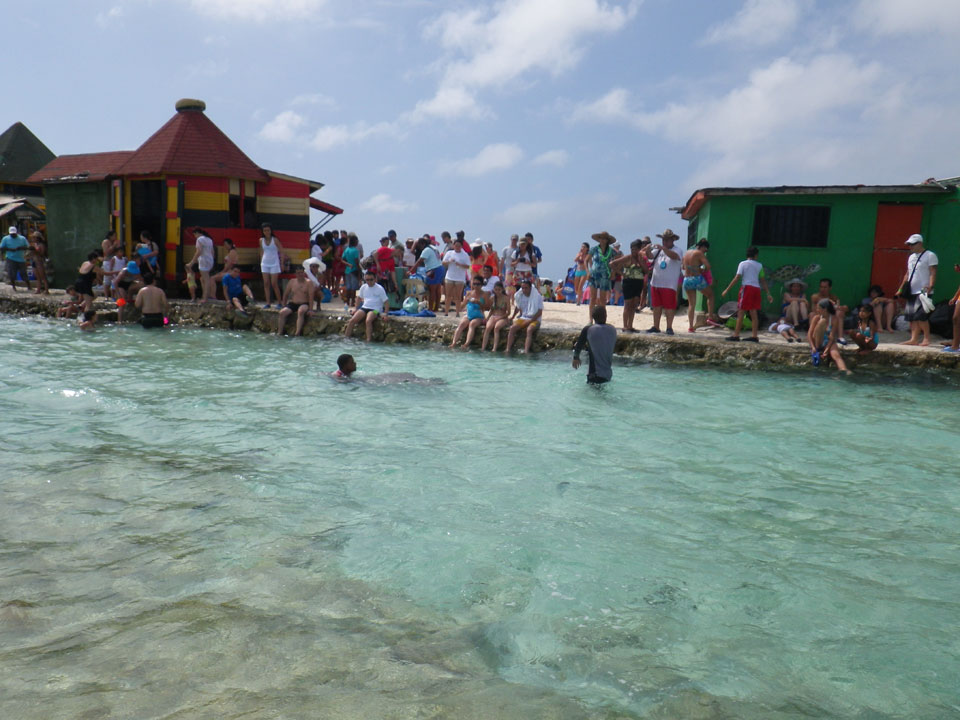 Zuerst noch die COP 4.000 Steuer für die Inseln bezahlt, dann ging’s los zum Aquarium. Auf der Miniinsel kaufte ich mir Schuhe für’s Wasser (13.000) und dann noch eine Taucherbrille (15.000). Die Taucherbrille war’s auch voll wert, weil unter Wasser sich die Fische tummelten.