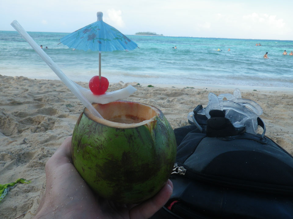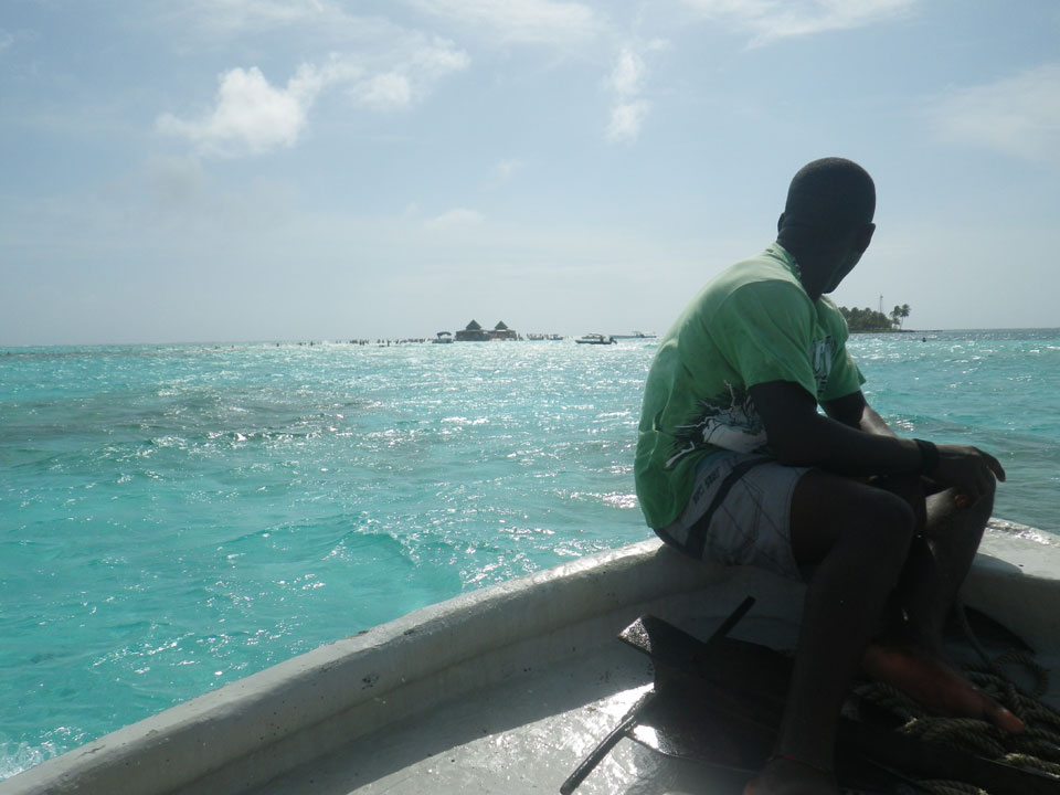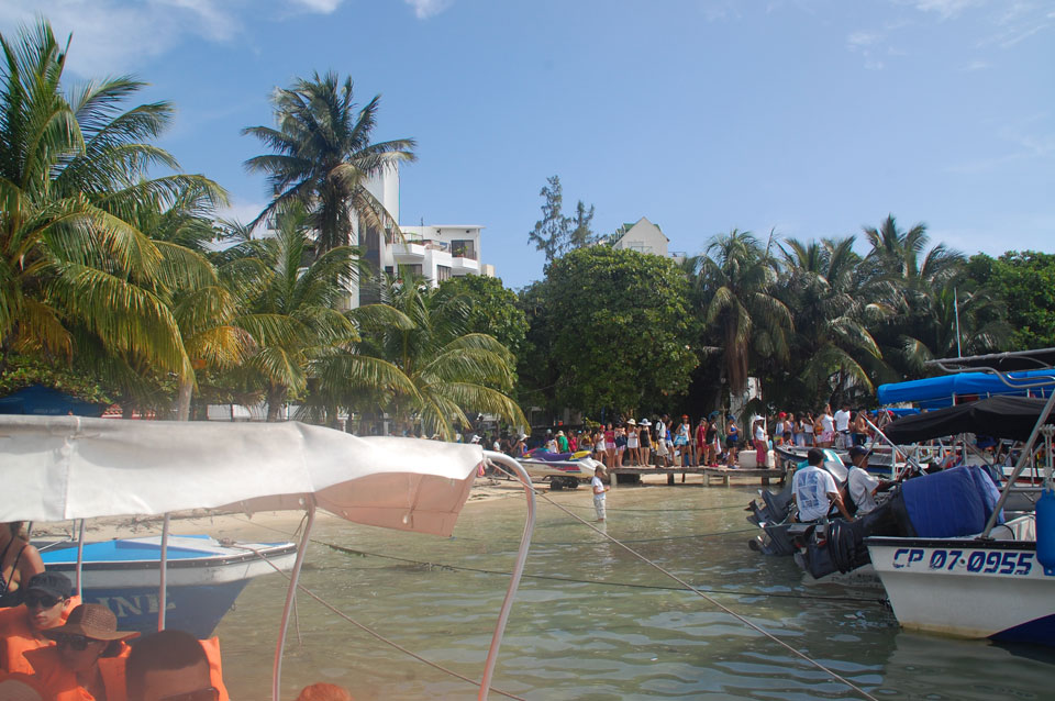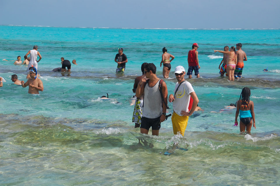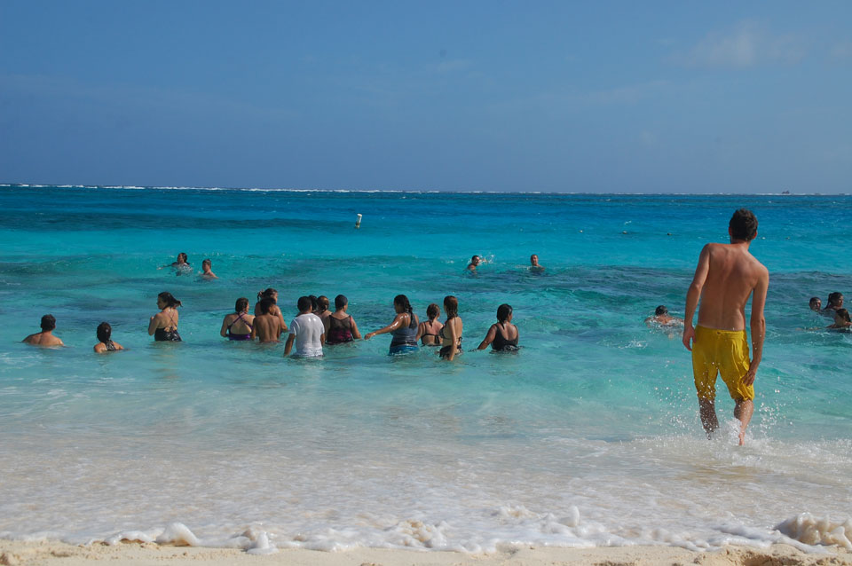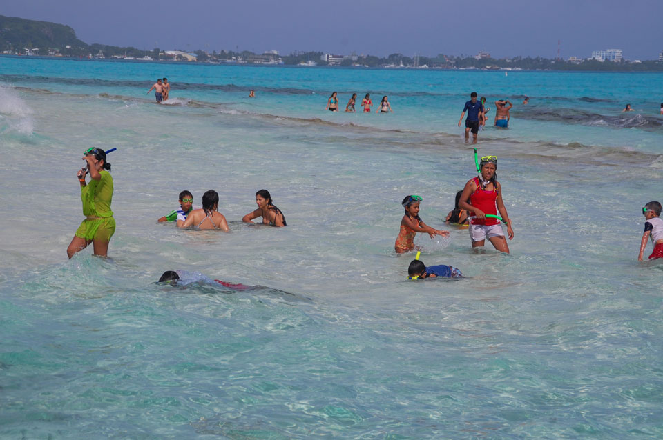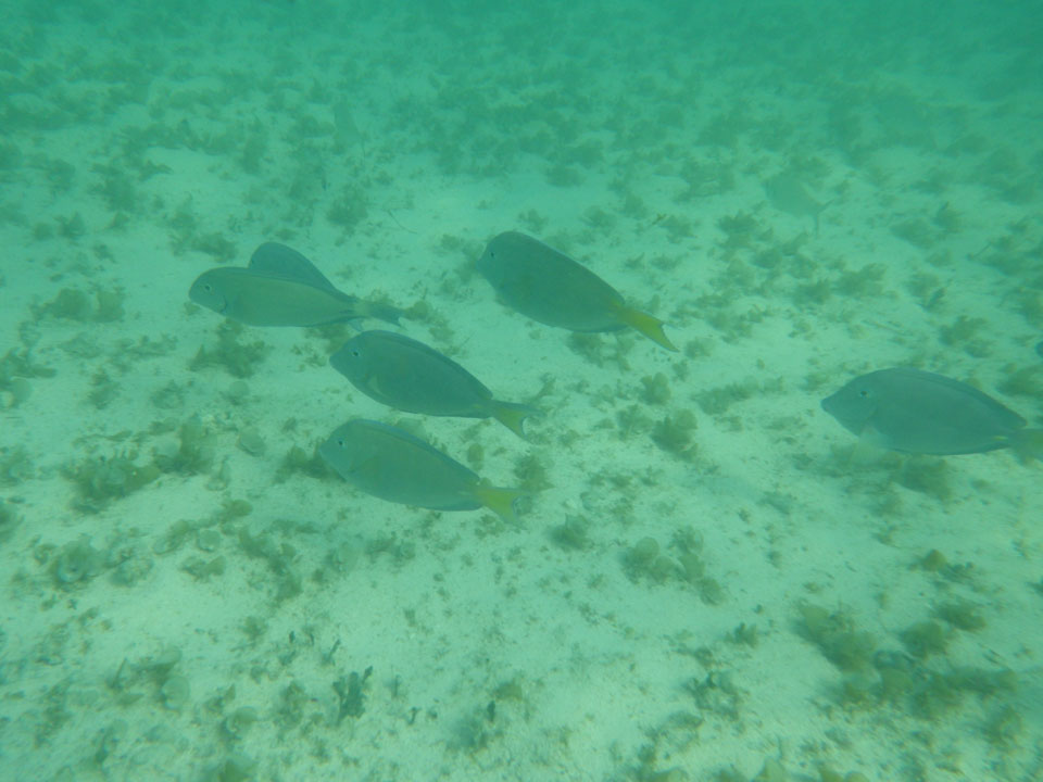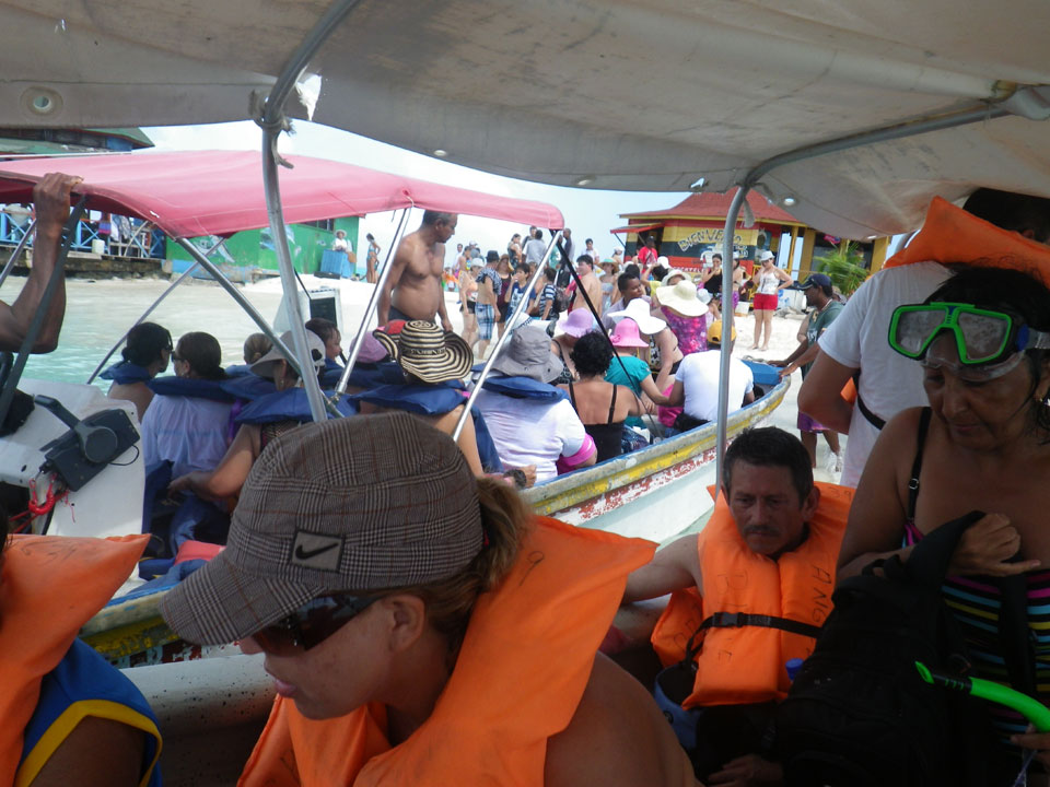 Zuerst noch die COP 4.000 Steuer für die Inseln bezahlt, dann ging’s los zum Aquarium. Auf der Miniinsel kaufte ich mir Schuhe für’s Wasser (13.000) und dann noch eine Taucherbrille (15.000). Die Taucherbrille war’s auch voll wert, weil unter Wasser sich die Fische tummelten.