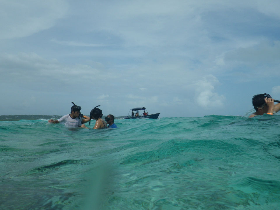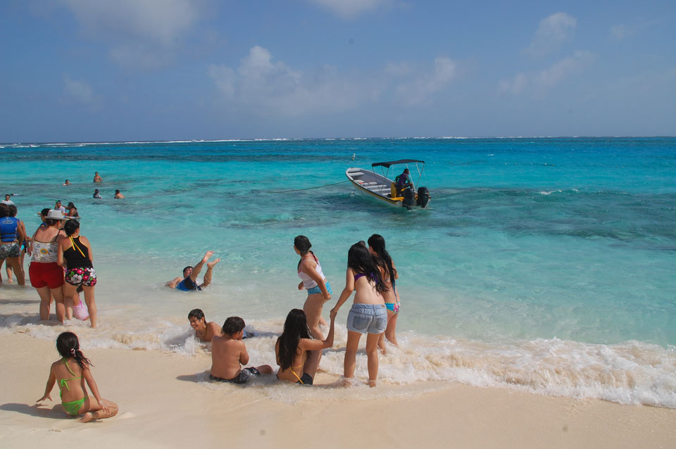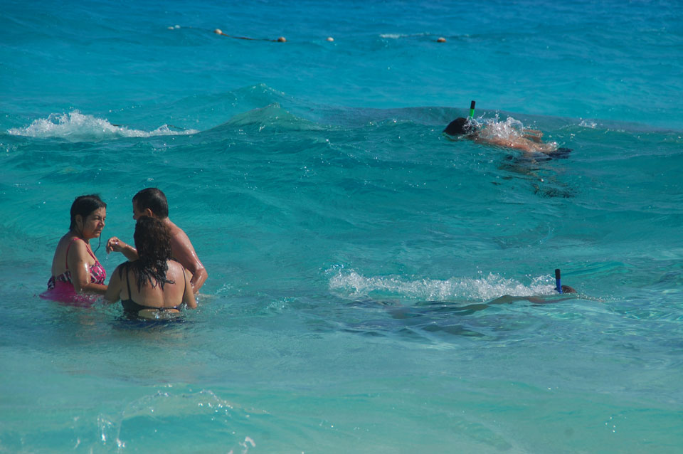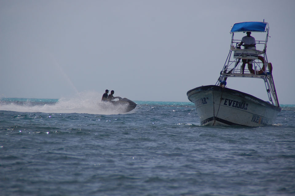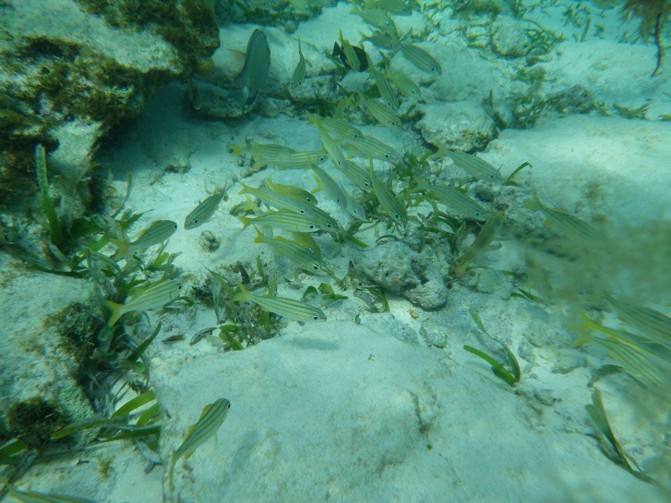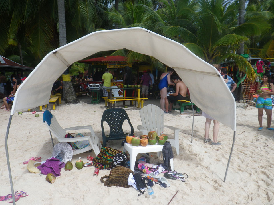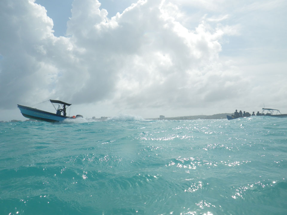 Zuerst noch die COP 4.000 Steuer für die Inseln bezahlt, dann ging’s los zum Aquarium. Auf der Miniinsel kaufte ich mir Schuhe für’s Wasser (13.000) und dann noch eine Taucherbrille (15.000). Die Taucherbrille war’s auch voll wert, weil unter Wasser sich die Fische tummelten.