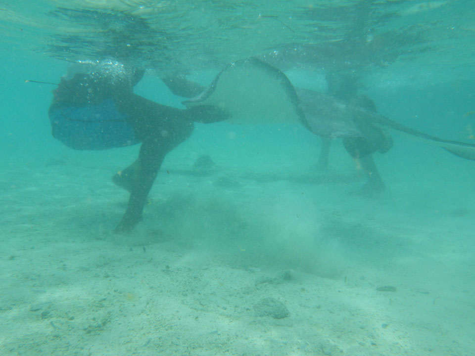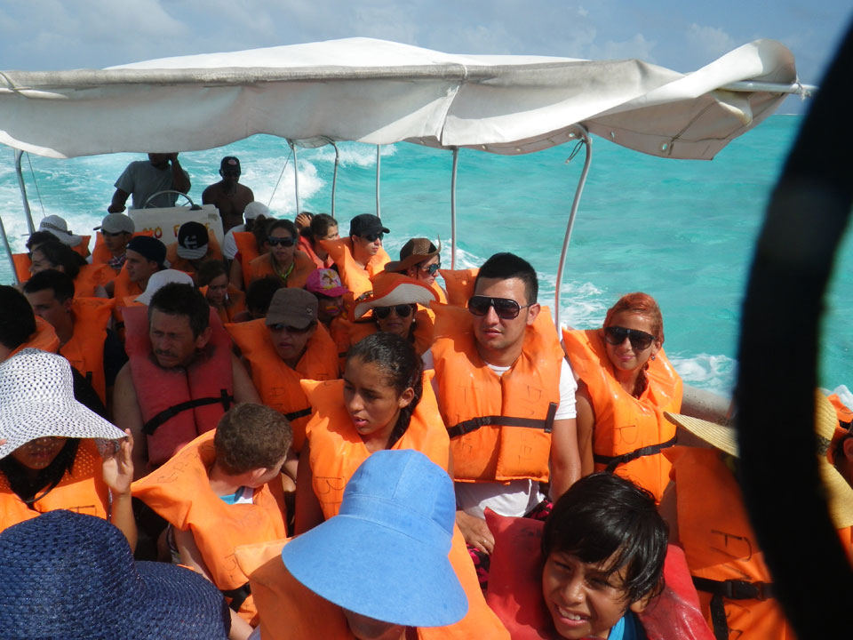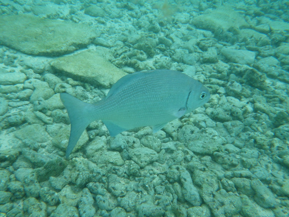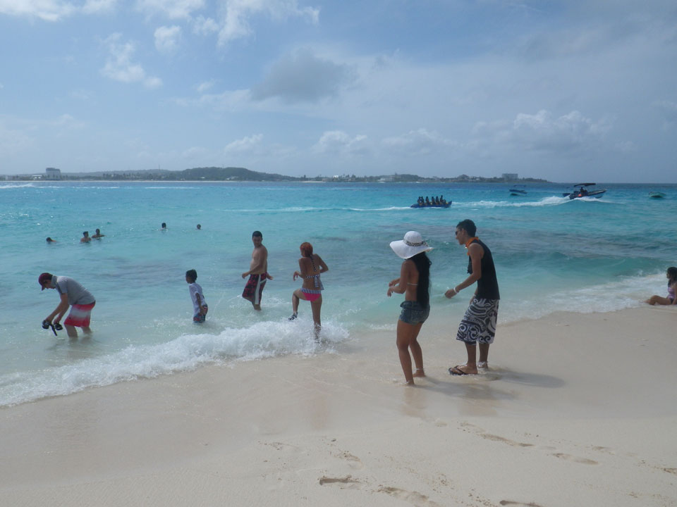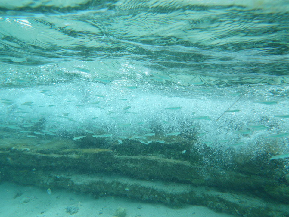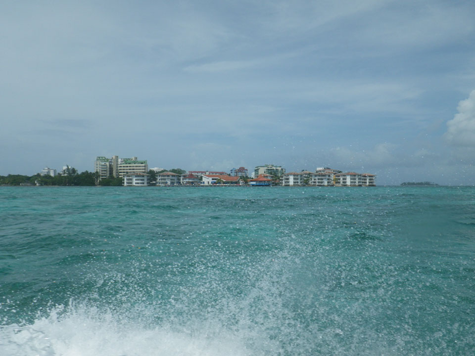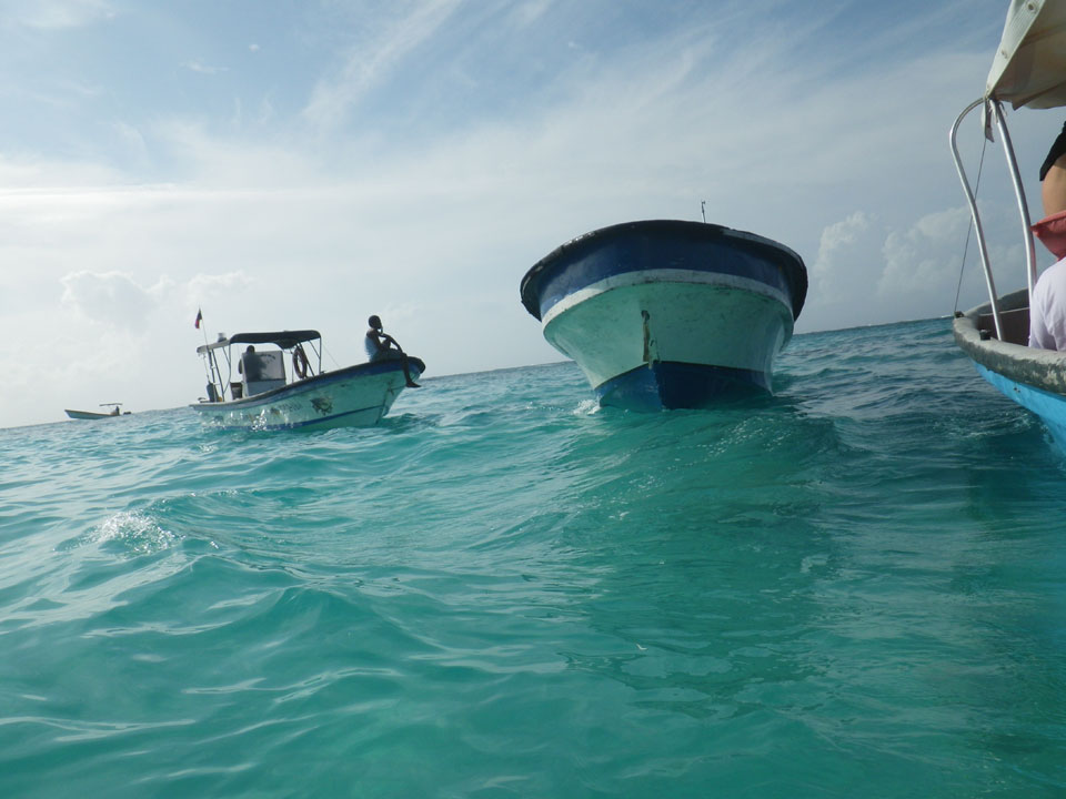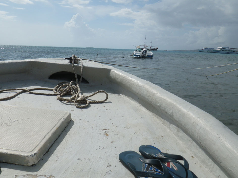 Zuerst noch die COP 4.000 Steuer für die Inseln bezahlt, dann ging’s los zum Aquarium. Auf der Miniinsel kaufte ich mir Schuhe für’s Wasser (13.000) und dann noch eine Taucherbrille (15.000). Die Taucherbrille war’s auch voll wert, weil unter Wasser sich die Fische tummelten.