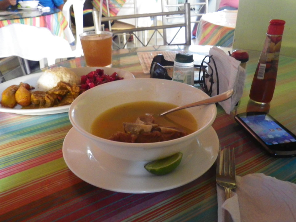 Ich zahlte noch eine Nacht (COP 33K) wegen meiner späten Abreise 1:30 und meine Wäsche (COP 27K), hatte ein Frühstück/Mittagessen nebenan (COP 8.000). Alles klappte gut, auch der Bus (COP 1.600) zu Rocky Cay.