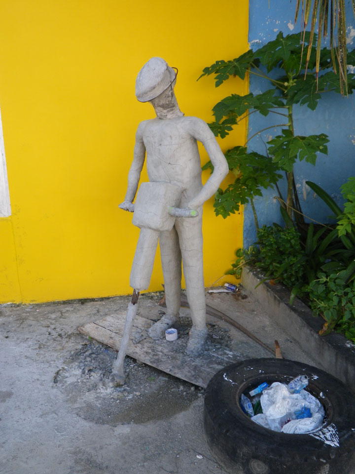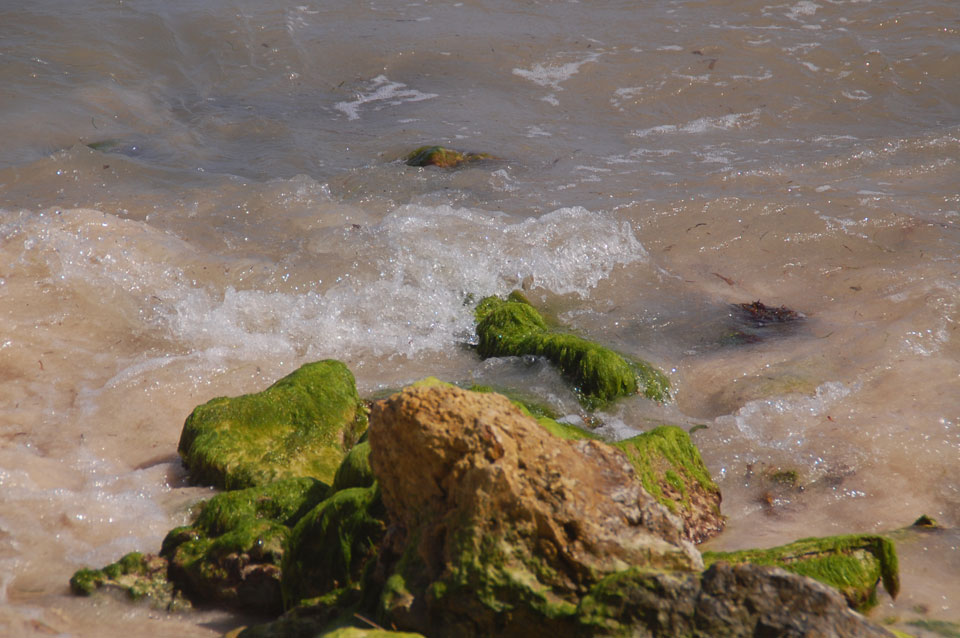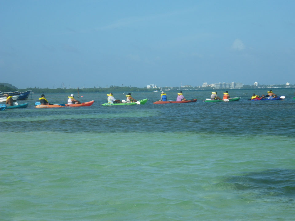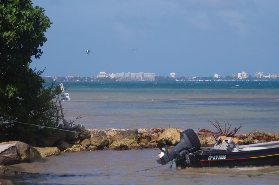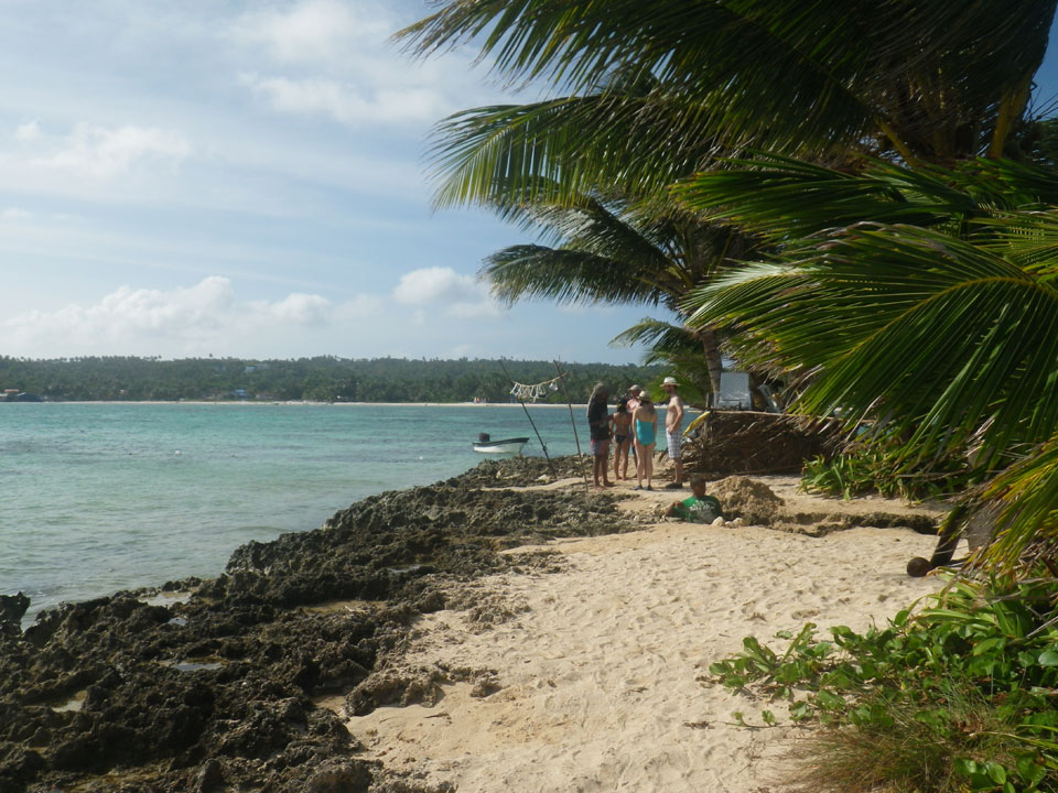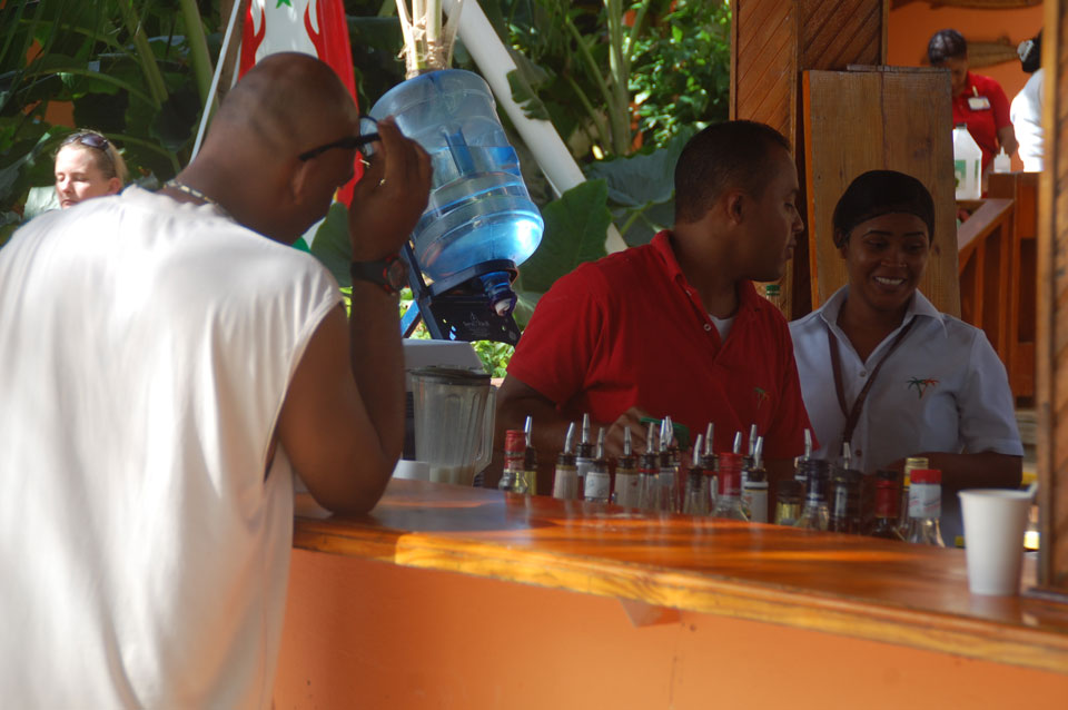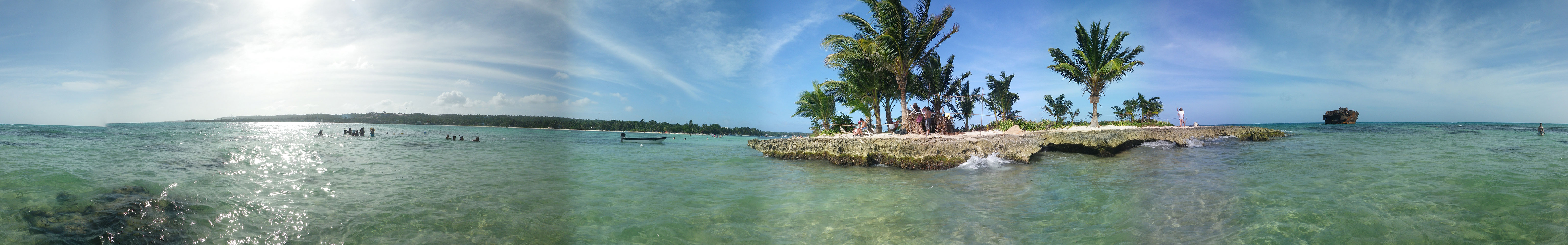 Dort war ein Resort oder Hotel, jedenfalls viele Leute. Ich sah das Schiffswrack. Zunächst hatte ich Rocky Cay auf der anderen Inselseite vermutet, jetzt also hier. Ich holte mir einen Locker (COP 5.000) und ’ne Limo bei der Hitze. So stiefelte ich durch’s Wasser auf die Insel. Bei den Vulkansteinen wären meine neuen Schwimmschuhe von gestern heute richtig gewesen. Die Flipflops reichten gerade so.