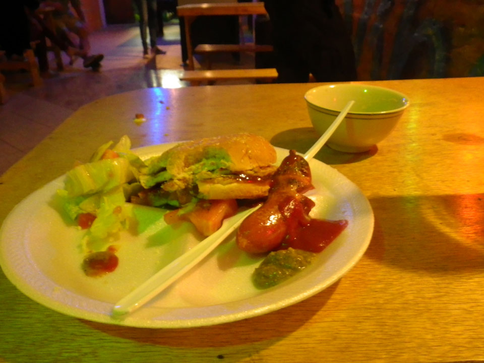 Im Hostel wurde BBQ aufgetischt. Ich erwischte das vorletzte Brötchen und hatte dann Steak, Wurst und Salat. Alles ganz OK – für $5 auch nett. Ich überlege immer noch die letzten 1-2 Nächte im besten Hotel hier am Ort zu übernachten. Etwas knausrig bin ich, wenn eben das Zimmer das über das 20-30fache eines Hostels kostet. Mal sehen.