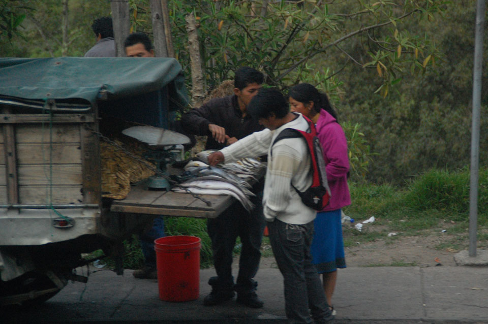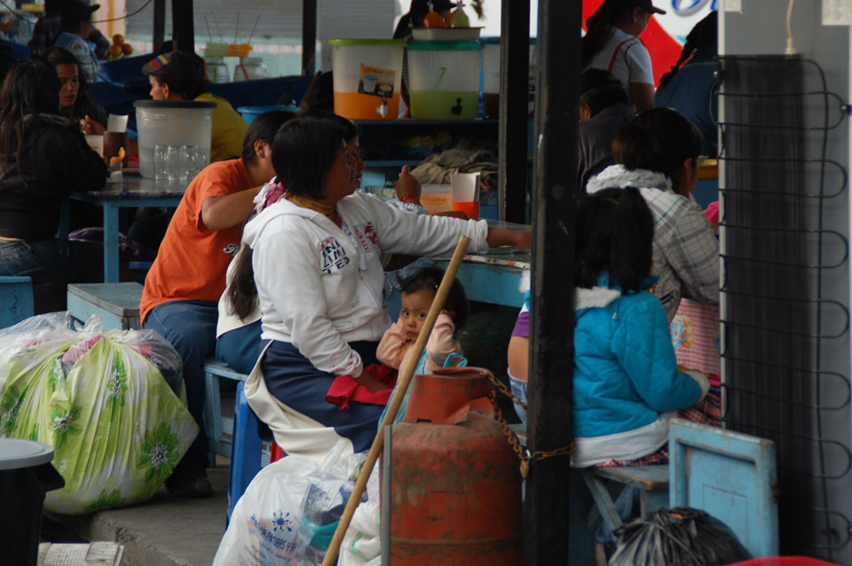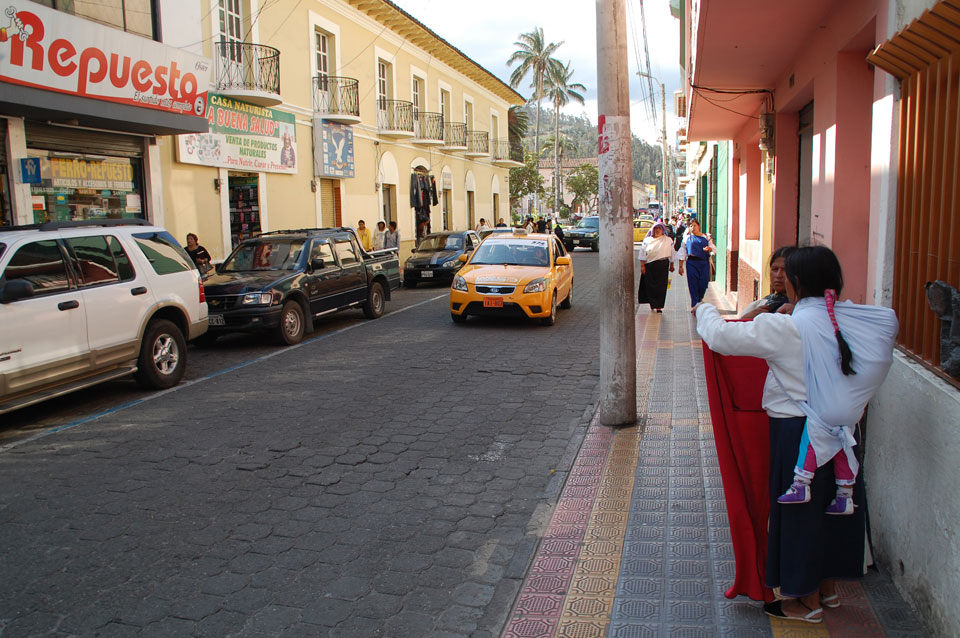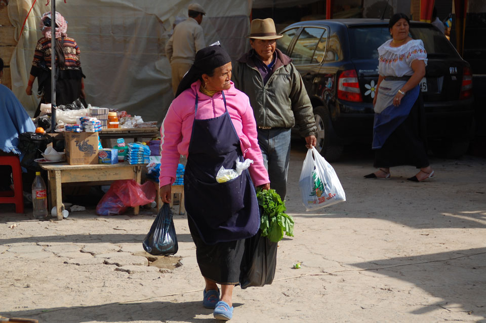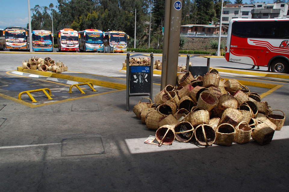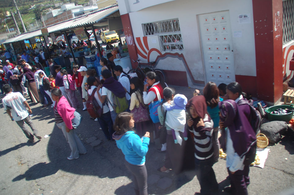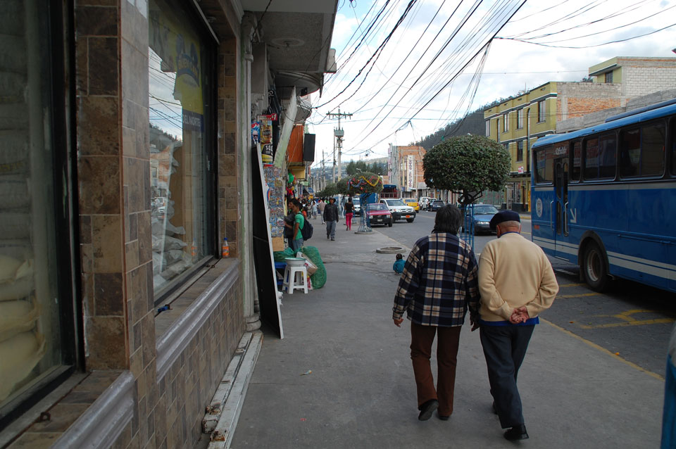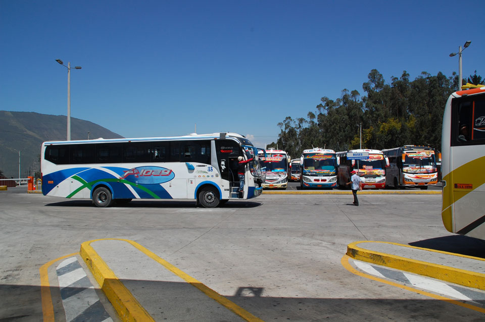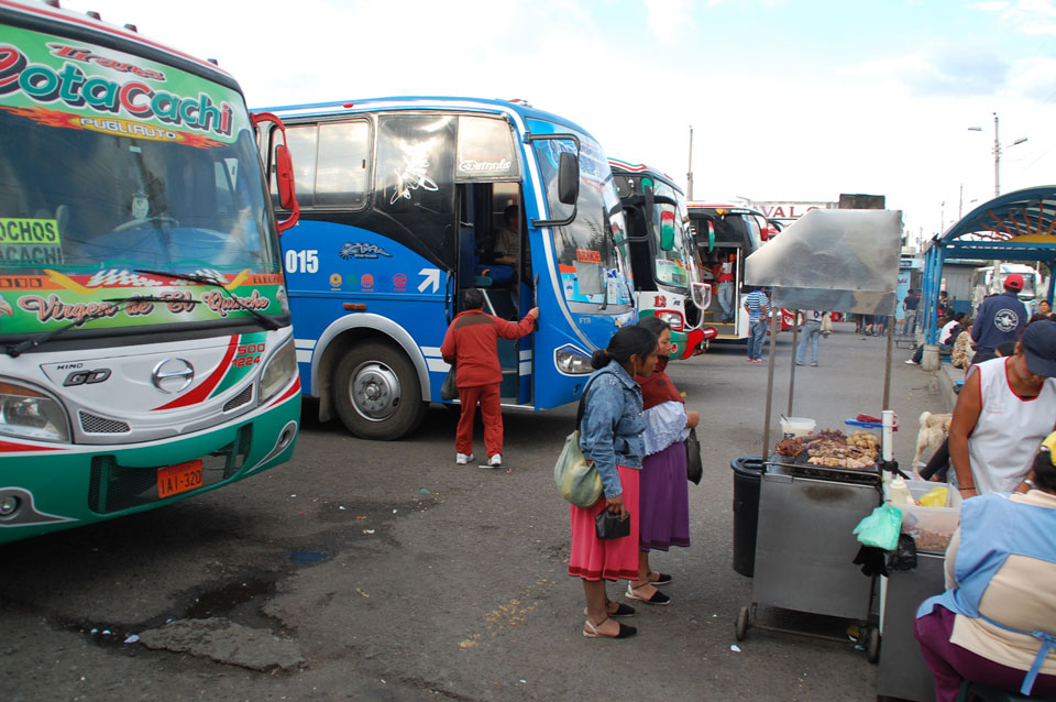Mit dem Taxi zum nördlichen Busterminal. Das dauerte Mittags durch den Verkehr, kostete $7. Um 12:30 saß ich im Bus nach Otavalo ($2.20). Die Preise sind immer noch $1 pro Stunde Fahrt, echt billig.