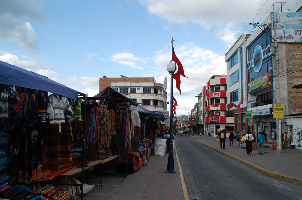 Otavalo ist eigentlich nur Samstags richtig interessant, wenn neben dem Artesan markt auch der Tiermarkt stattfindet. Heute war’s eher ruhig und ich fand dann auch alle Märkte, sogar den „Plaza de la Poncho“, woc ich ein paar Souvenirs kaufte. Ich bekam die Sachen meist nur 20-40% unter Startpreis – alles um die $10, was eigentlich egal ist .. besonders bei einem möglichen $200 Hotelzimmer zum Abschluss.