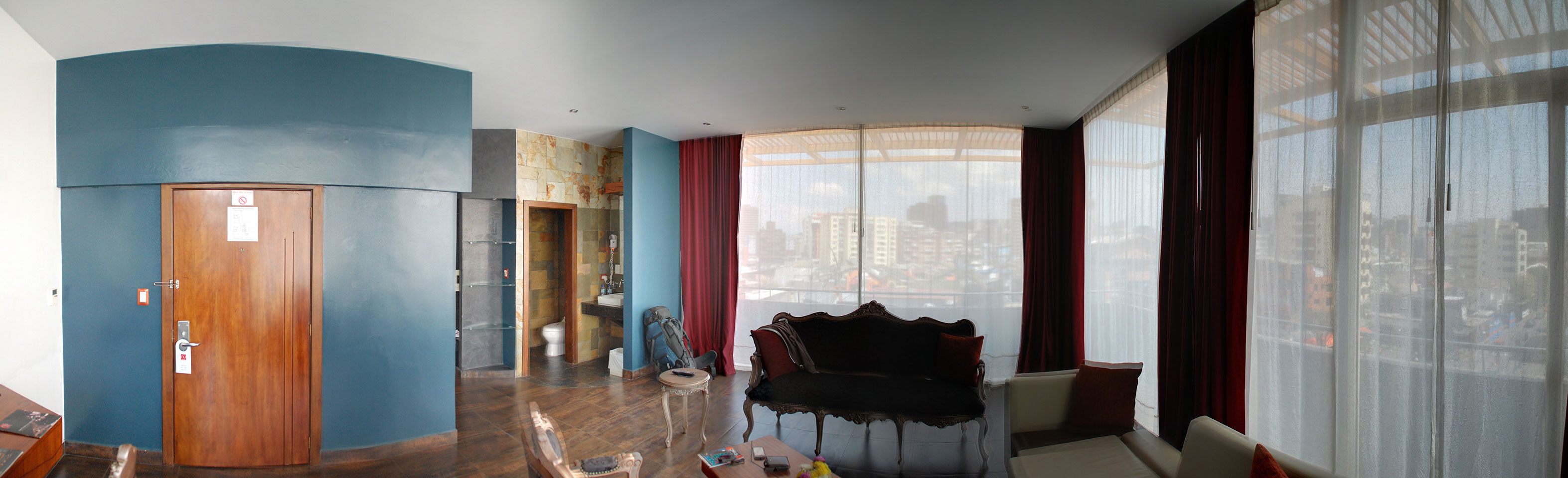 Etwas chillen, Yoga und dann in’s Nachtleben. Besuch und ein gutes Abendessen mit den Welcome Drinks des Hotels. Ich war zufrieden, für den Dienstag ist allerhand los. In Quito kann man quasi nur Sonntag und Montag komplett vergessen. Die restlichen Tage ist Party angesagt und wenn ich solche Zimmer sehe, habe ich auch etwas mehr Motivation, die Kohle zu verdienen und so kam heute etwas Arbeit zustande.