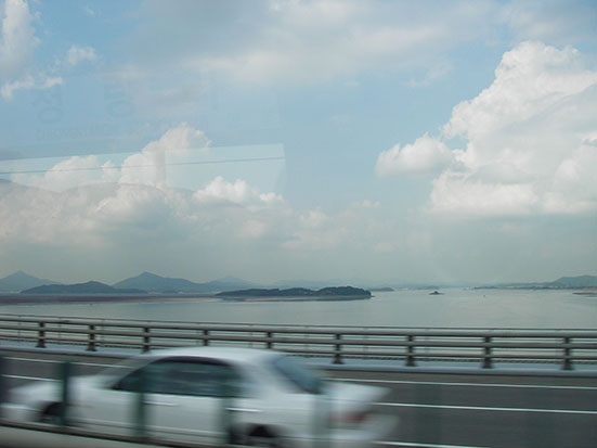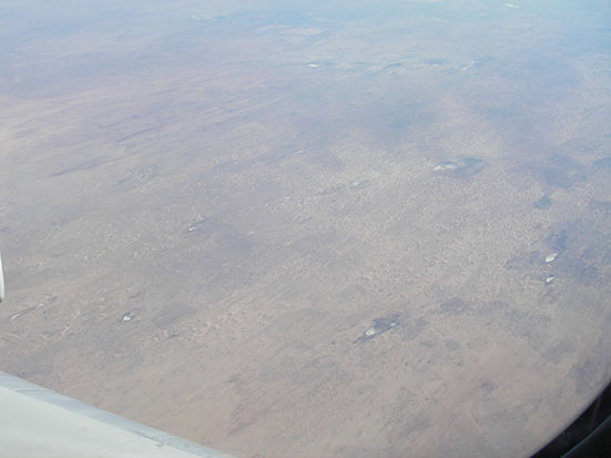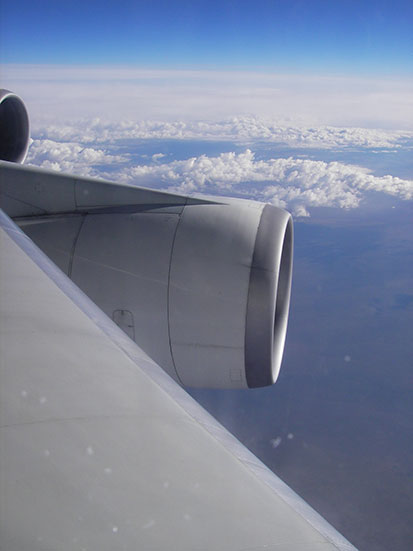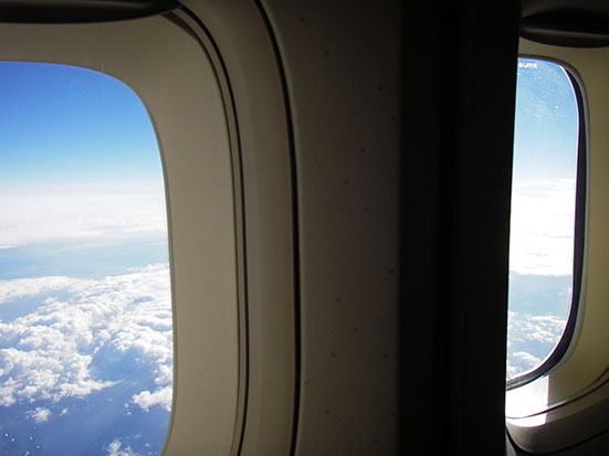 Es ging über die Wüste Gobi, wolkenlos und menschenleer. Ewig lange Straßen mit ein paar Minisiedlungen, soweit man das aus 10km Höhe ehen kann. Und dann noch mehr China mit Feldern und Städten. Schließlich Anflug auf Seoul über kleine Inseln — leider ohne Photos.