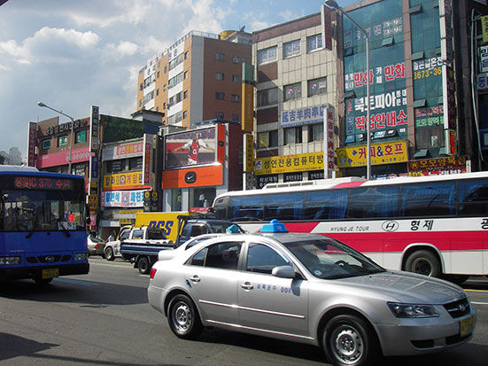 Ich wusste, welche Haltestelle ich ‚raus musste aber merkte es zu spät. Ich kramte die Seouler U-Bahn Karte heraus und stieg dann an einer günstigen Station aus. Da lagen schon ca. 1 1/2 quälend langsamer Stau hinter mir. Mit er U-Bahn dauerte es dann nochmal 1 1/2 h bis ich an meiner Station war. Immer wieder schlief ich ein, schreckte hoch — ganz schön fertig. Dann nochmal 30‘ bis ich das Hostel im Wohngebiet fand. Eigentlich ging alles ohne Probleme – dummerweise hatte ich zu schlechte Reaktion bei der ersten (richtigen) Bushaltestelle.