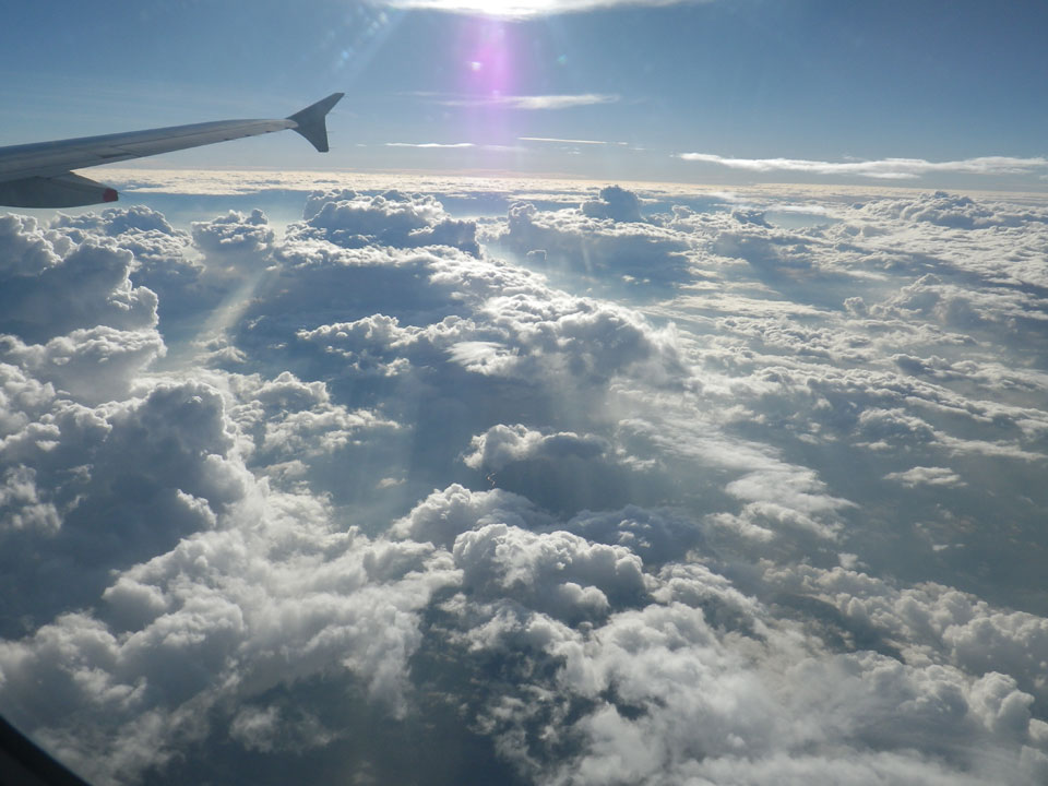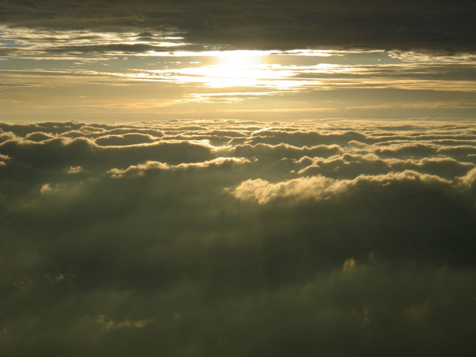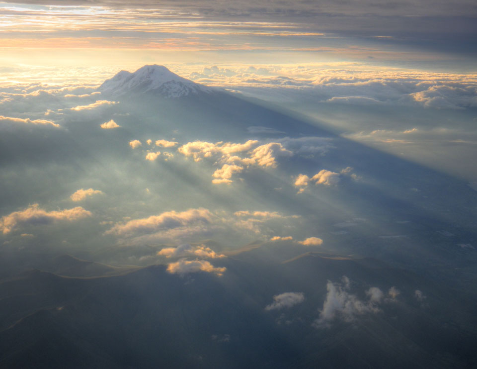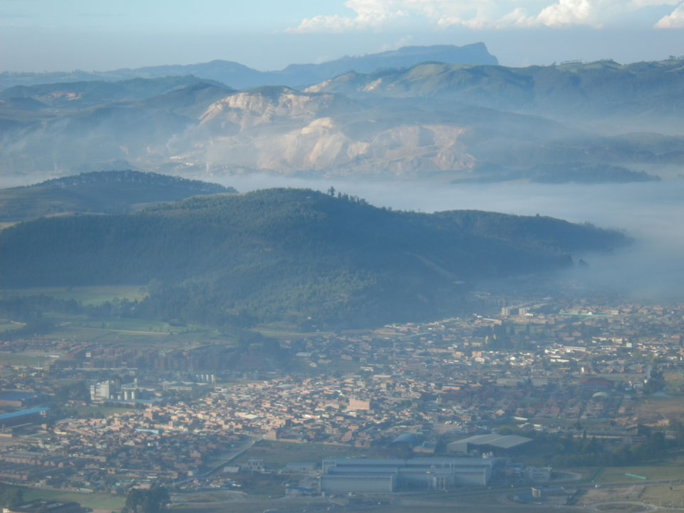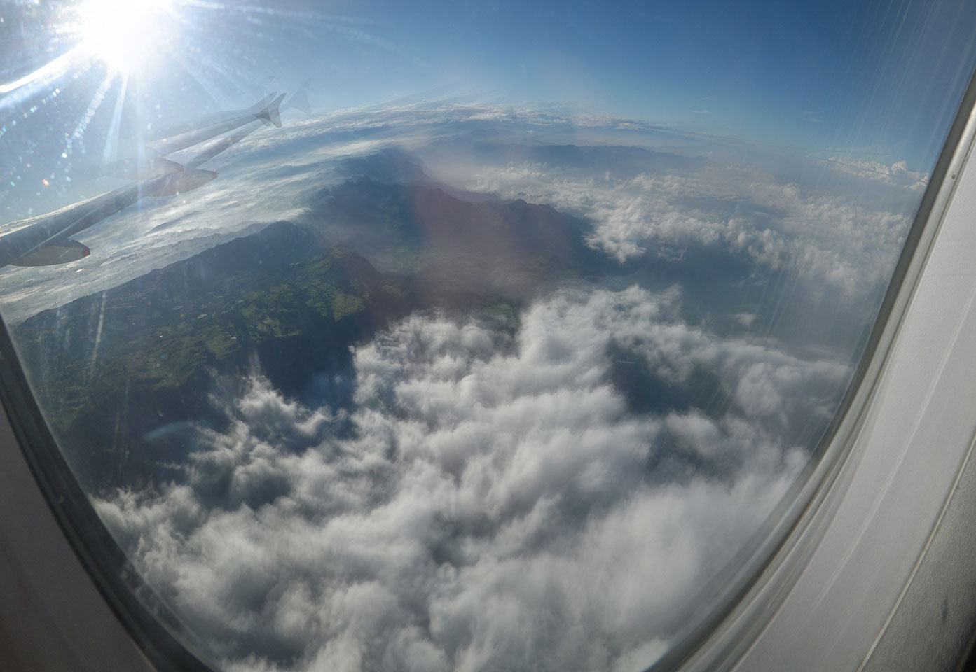 Der Flug startete phänomenal: Cotopaxi(?) sah ich aus dem Fenster und mit dem Sonnenaufgang war das Licht einfach genial. Die Wolken, die Aussicht und alles fand ich super. Auch bei der Landung in Bogota sah das mit dem Morgennebel einfach Klasse aus.