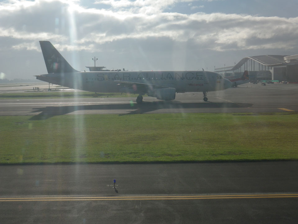 Früh morgens stand ich rechtzeitig am Check-In. Gestern hatte mich ein Insekt an der Hand gebissen. Das machte etwas Probleme, hatte ein Deja Vú. Zuerst stand ich am Copa Schalter, war der Falsche – ich fliege ja AirGal-Avianca-Lufthansa.