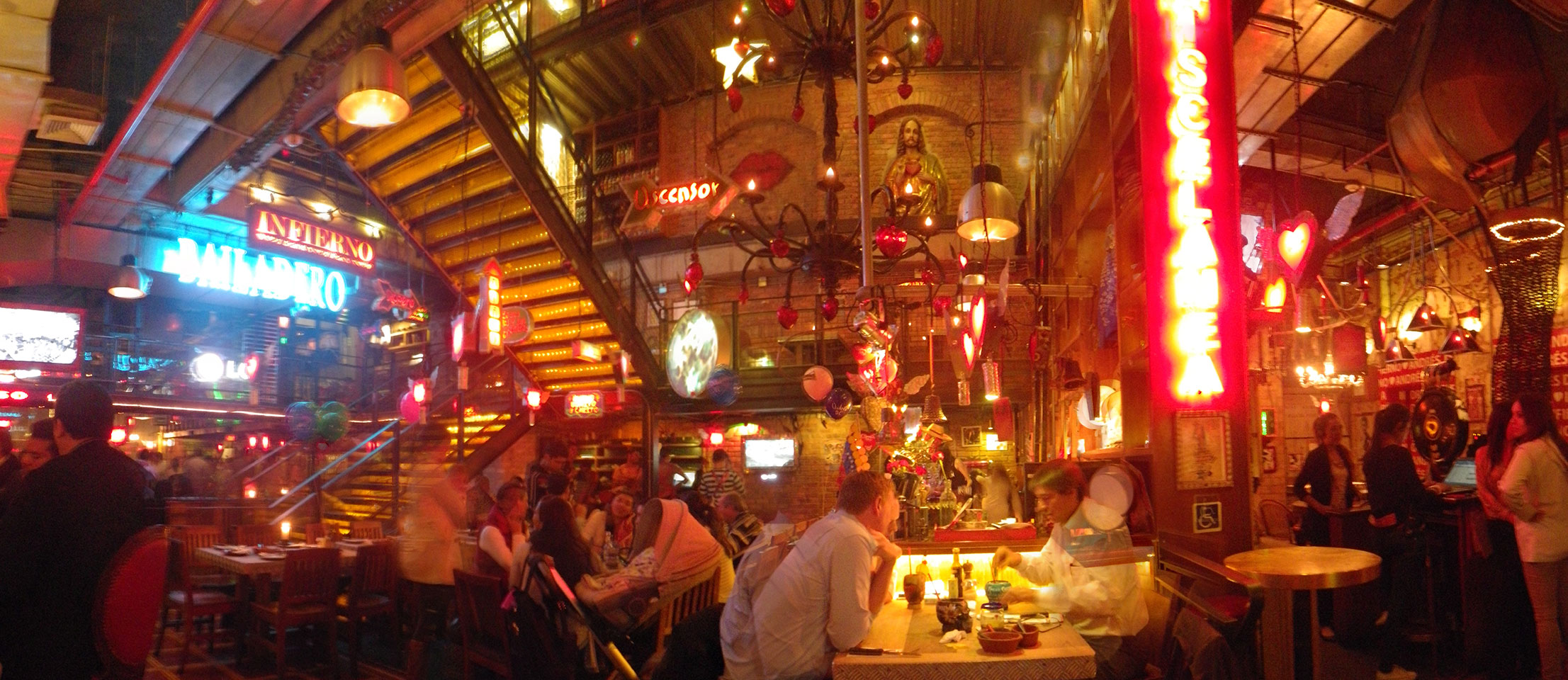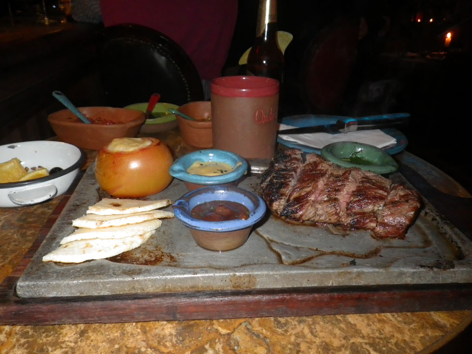 Mit dem Taxi zu Andrés Carne des Res. Ich musste eine Weile laufen, weil der Taxifahrer nicht im Zona Rosa Stau stehen wollte. Zeitlich hatte ich das gut geplant, nun war ich doch froh über den späten Weiterflug. Ein Steak in diesem Restaurant wollte ich schon bei meinem ersten Besuch essen. Damals gab’s nur Drinks, jetzt klappte das früher, als ich dachte.