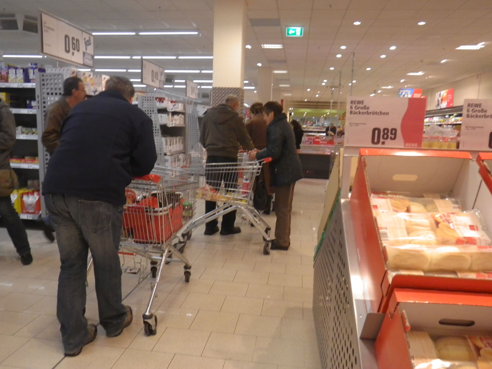 Nach zwei Mal Weihnachten im Ausland – 2010 Vietnam, 2011 Peru – jetzt also mal wieder zu Hause. Das war OK, ich ging früh noch vor’m Schlaf ein paar Sachen einkaufen. Diese Idee hatten auch andere. Noch nie sah ich so lange Schlangen vor der Kasse im REWE.