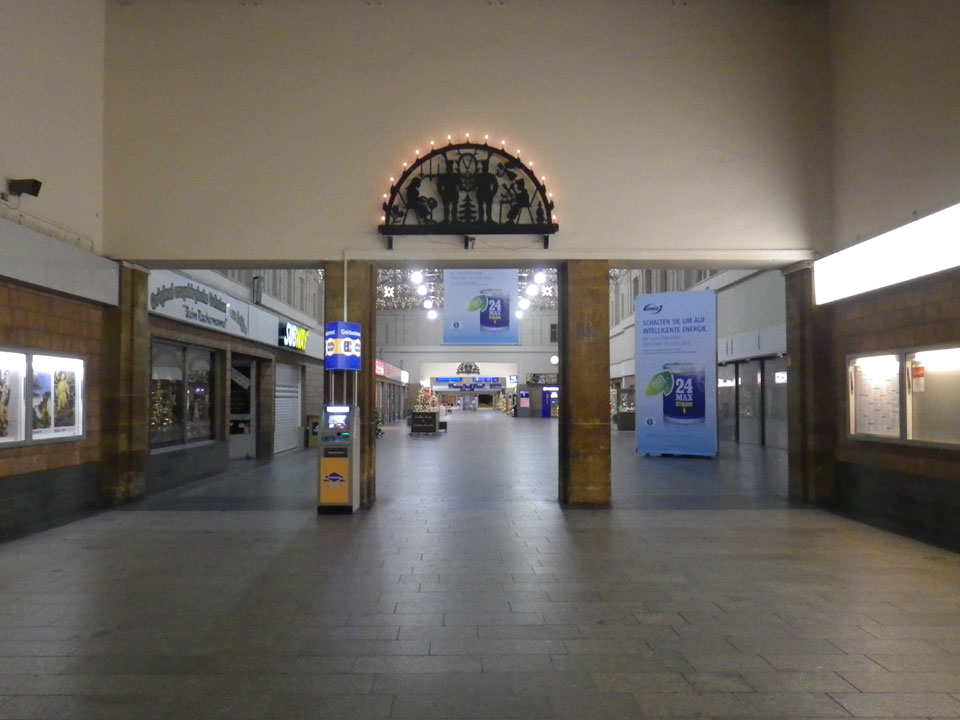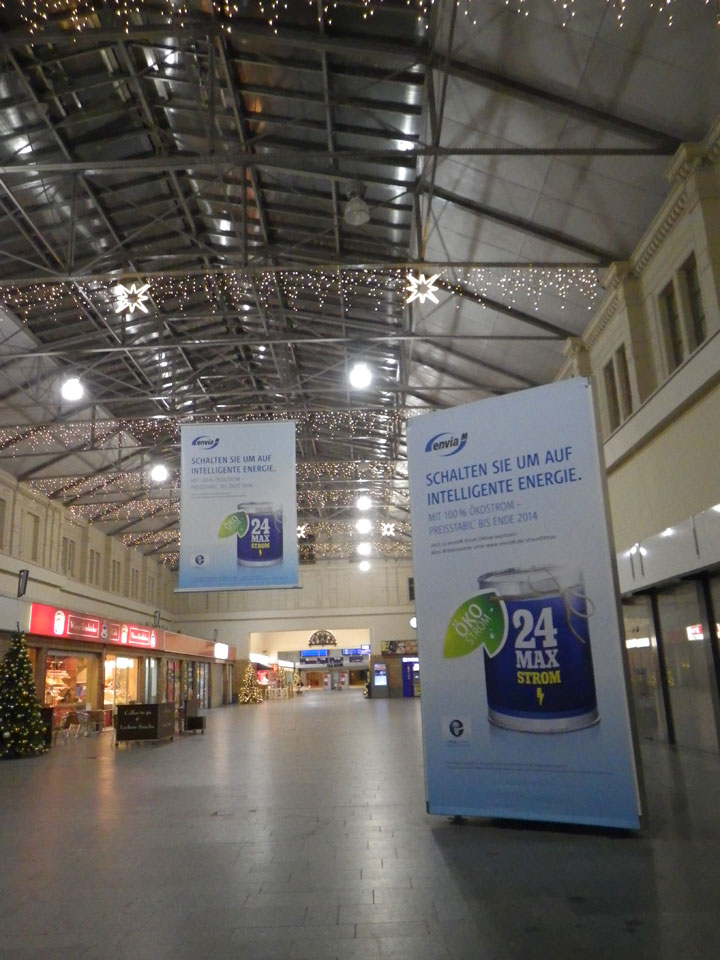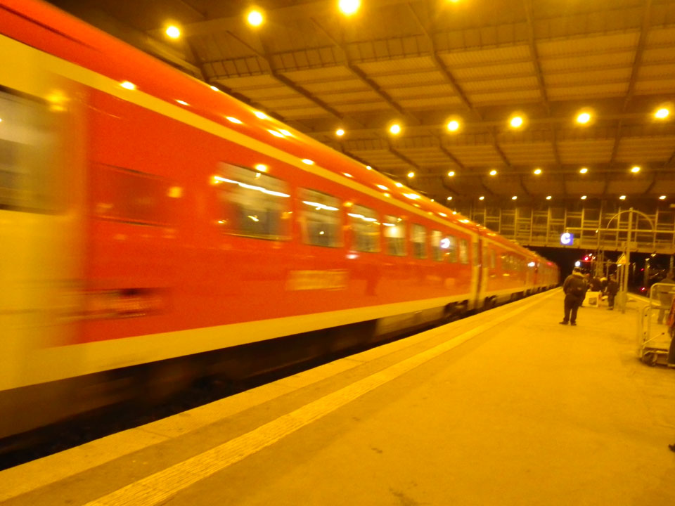 Meine Sachen gepackt, 10′ Schlaf und dann in die Routine: Frühstück, Taxi zum Bahnhof. Ich steckte einen Brief noch beim Finanzamt ein und war eine halbe Stunde zu früh auf dem Bahnhof.
