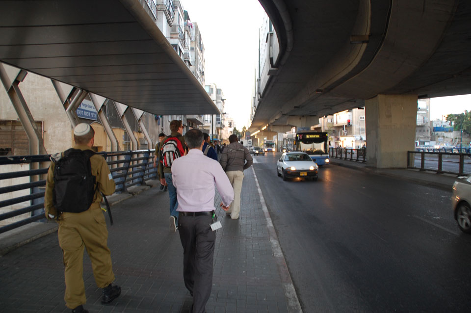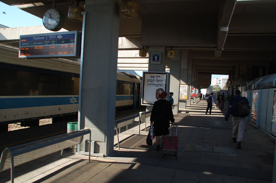 Ich wollte zum Bahnhof, nahm ein Taxi, was ein paar hundert Meter fuhr. Eigentlich hatte ich 30 NIS ausgemacht, gab aber nur 20, was auch viel zu war.