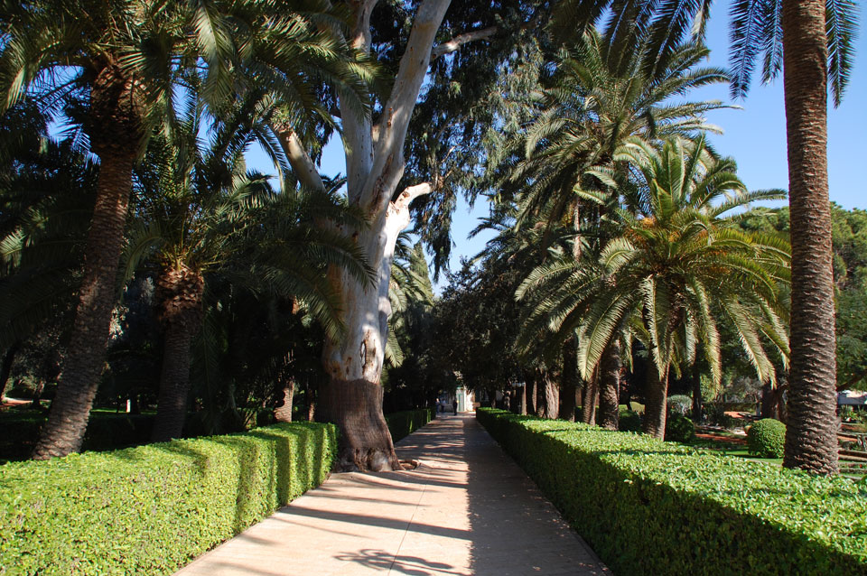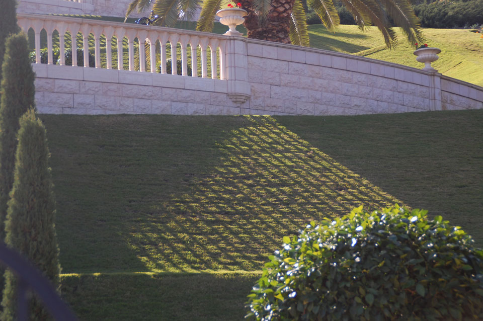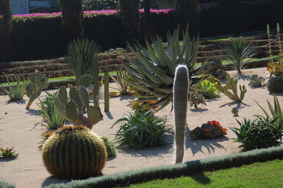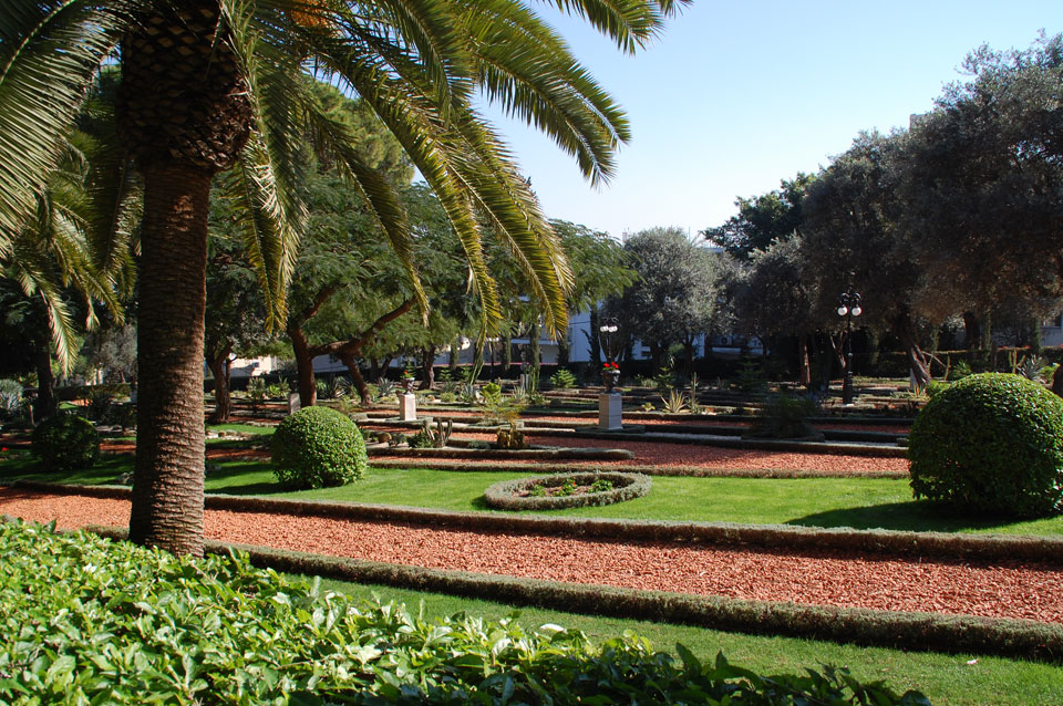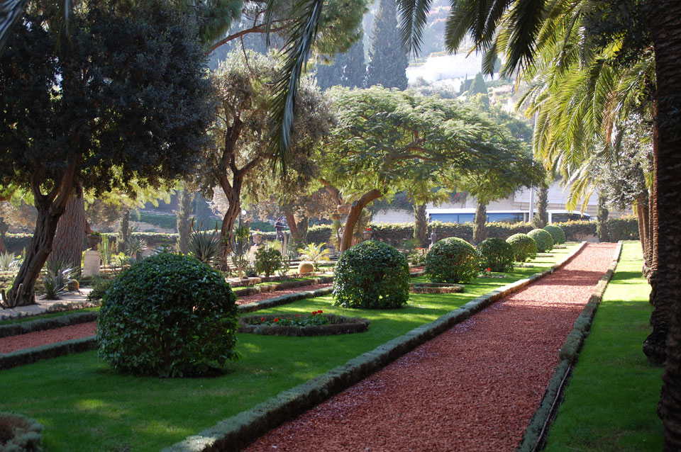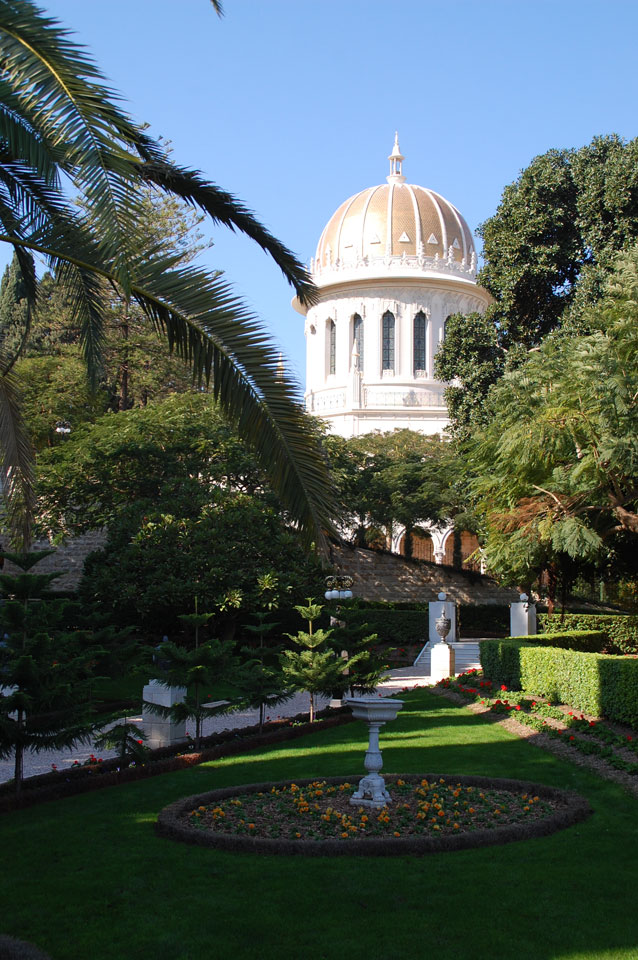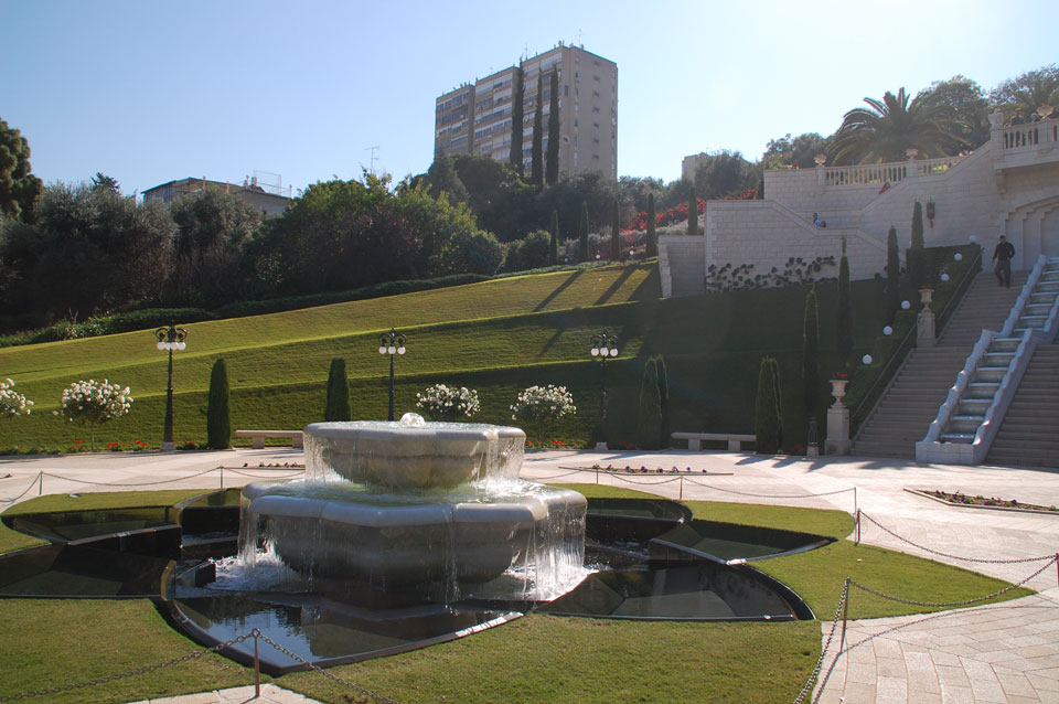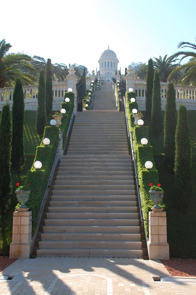 Die Bahá’í Gärten waren sicher eine der saubersten Gärten, die ich jemals sah. Blank geputzte Wege, herrliches Wetter. Ich sah den Schrein, in dem keine Photos erlaubt waren. Ein paar Blumen und Kerzen, was mir nicht viel sagte. Ich habe mit der Religion eben nichts am Hut.