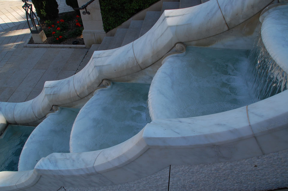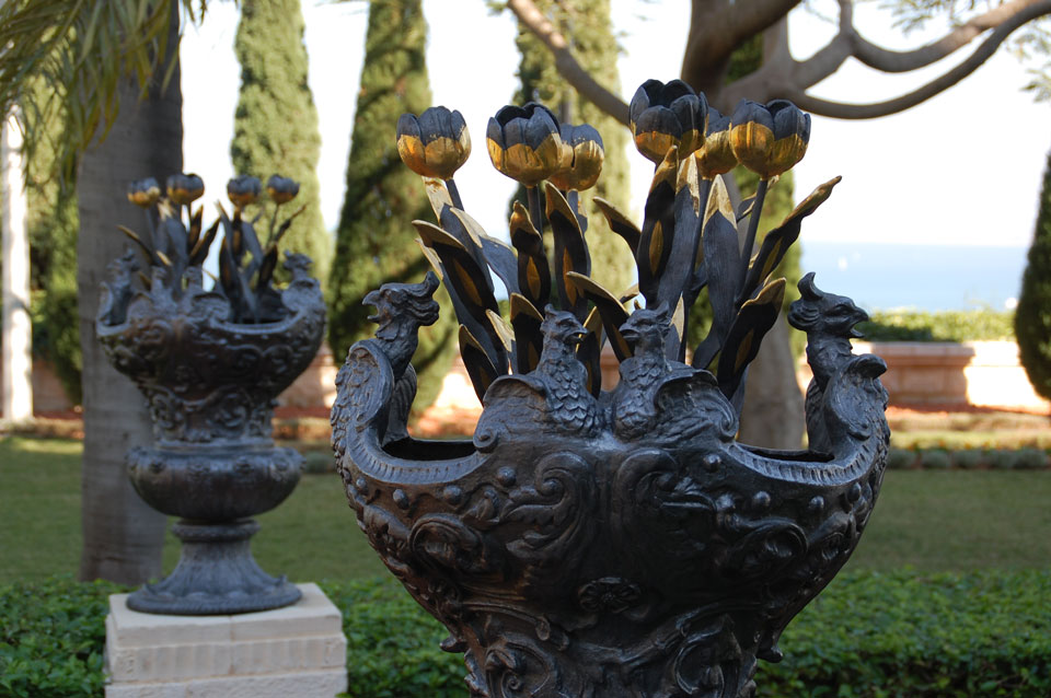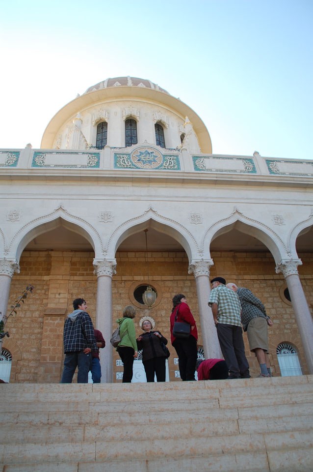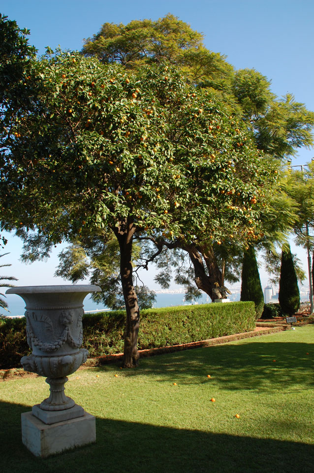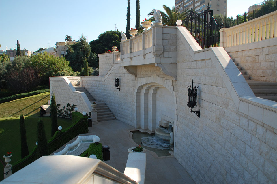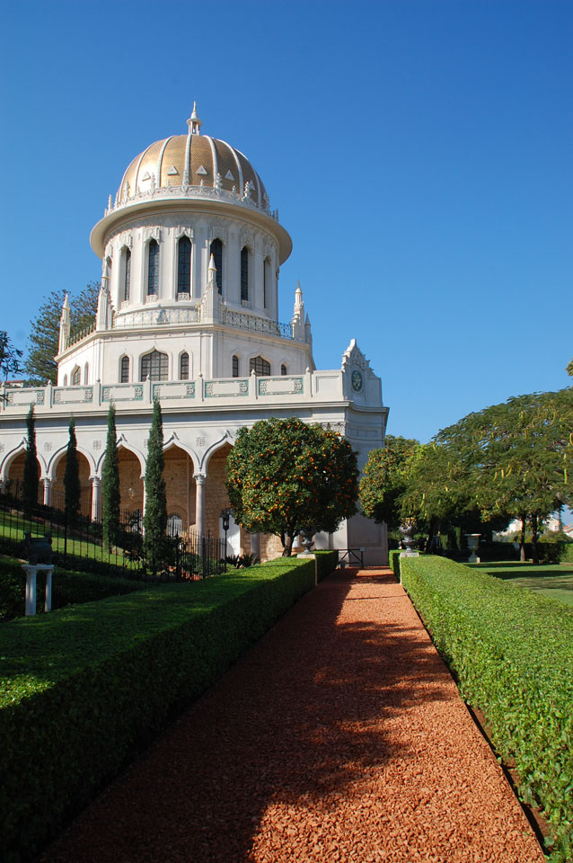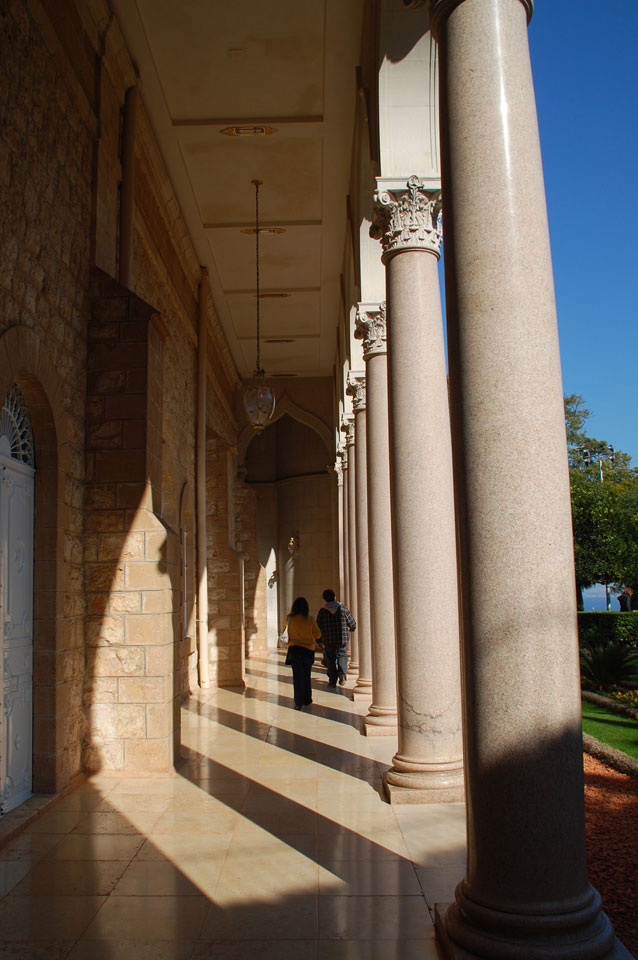 Die Bahá’í Gärten waren sicher eine der saubersten Gärten, die ich jemals sah. Blank geputzte Wege, herrliches Wetter. Ich sah den Schrein, in dem keine Photos erlaubt waren. Ein paar Blumen und Kerzen, was mir nicht viel sagte. Ich habe mit der Religion eben nichts am Hut.