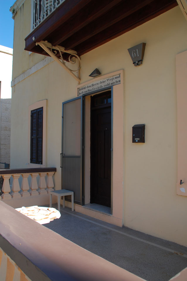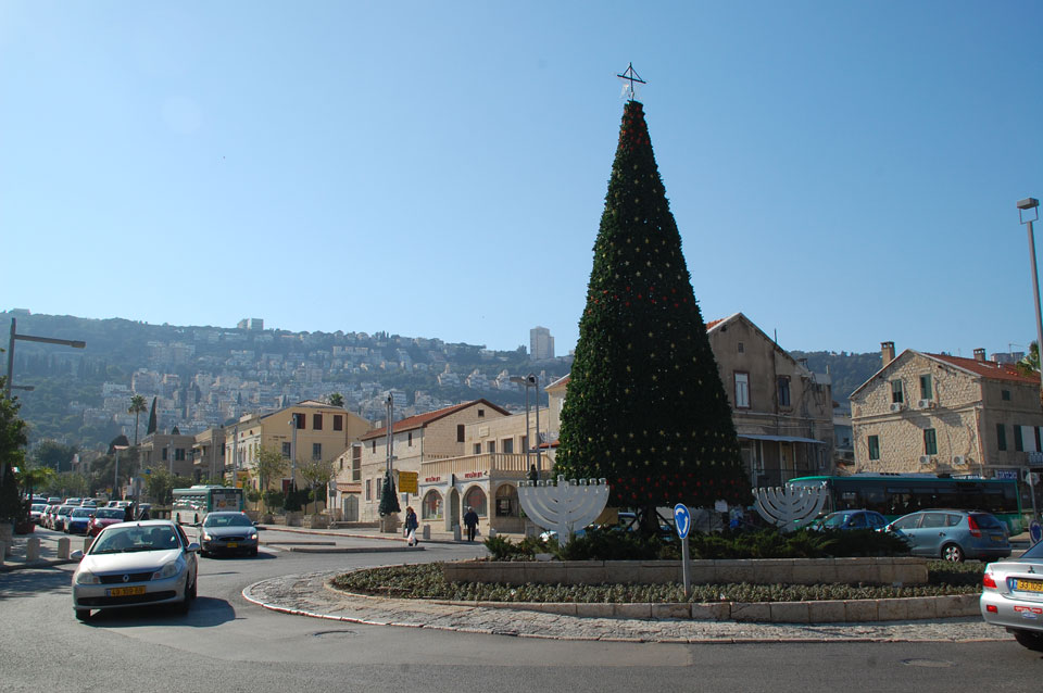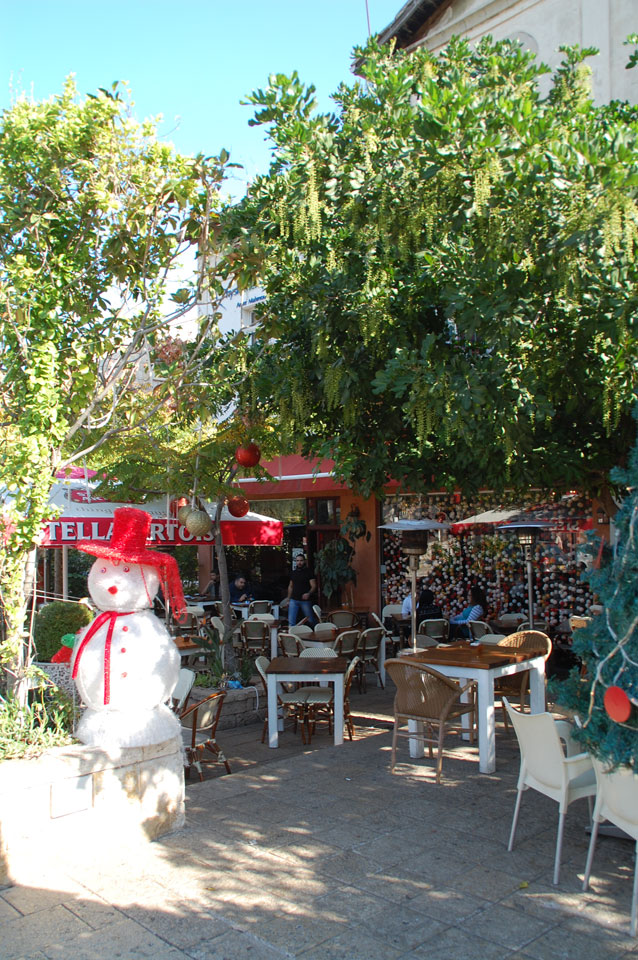 Ich spazierte runter, wollte in die Gärten aber ohne Tour waren sie geschlossen. Die Tour um 12 hatte ich um 10′ verpasst. Auch OK, so checkte ich die Deutsche Kolonie, durch die Haifa an wirtschaftlicher Bedeutung gewann. Ein paar Häuser hier im deutschen Stil mit deutschen Sprüchen überall – auch ein Weihnachtsbaum stand herum.
