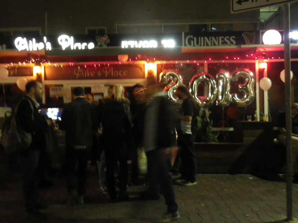 Wir spazierten zum Ausländer-Treffpunkt #1 wohl – Mike’s Place am Strand. Als wir da gegen 23:00 auftauchen war irgendwie tote Hose. Im Restaurant war die Stimmung besser, mit weit weniger Leuten. Hier war die Bude voll und wir überlegten uns schon, wieder abzuhauen. Es war aber eine gute Entscheidung, zu bleiben. Ich hatte einige Cuba Libre und um Mitternacht wachten alle auf. Küsschen für 2013, Schampus für die Leute, Tanz bis in den Morgen. Ich war voll happy, hatte einen super Start. Tel Aviv ist super!