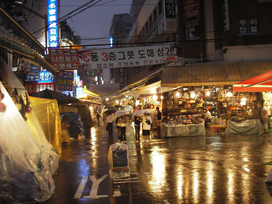 Das Wasser rauschte nur so vom Himmel. Glücklicherweise gibt’s Regenschirme vom Hostel. Mit ’ner großen Haube kam ich zur U-Bahn U-Bahn und wieder eine Station nach der Seould Station zu Tage.
