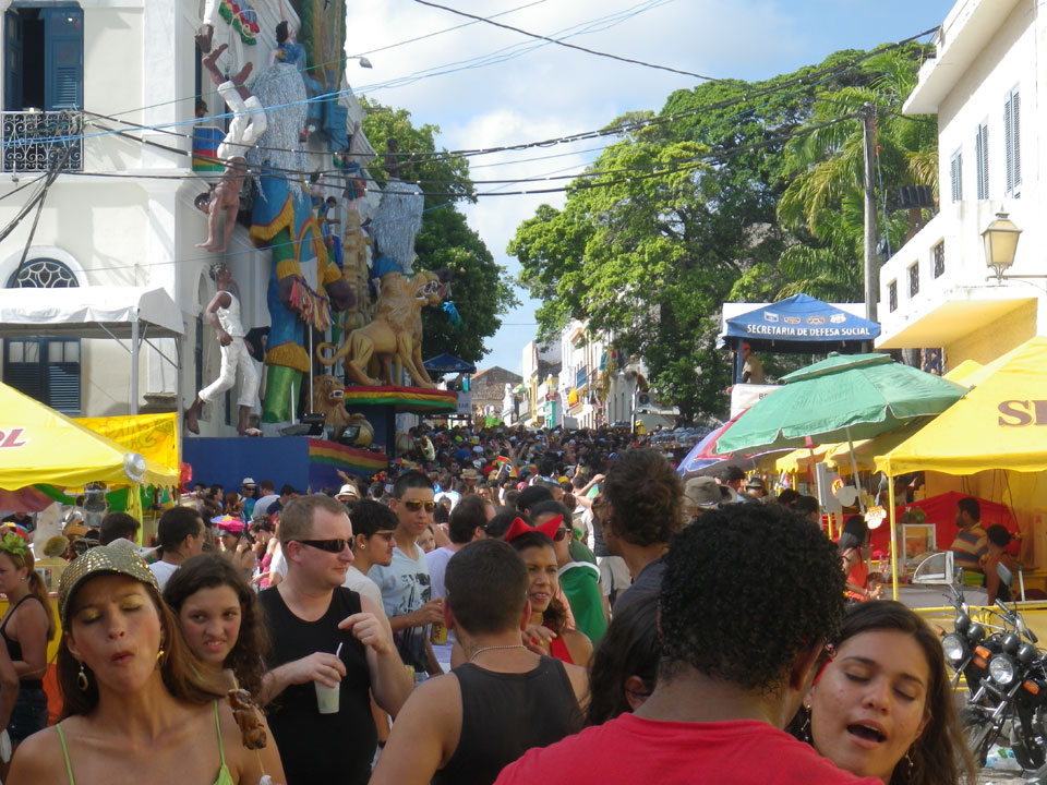 Nachmittags furh ich mit dem Taxi nach Olinda. Dort schienen mehr junge Leute zu sein. Straßen waren um einiges älter und enger als in Recife und so zwängten sie die Leute auch ordentlich. Die Stimmung dort eigentlich noch besser aber eben etwas zu eng. Ein paar nette Blocos nahm ich mit, fuhr dann mit dem Bus zurück. Kein Alkohol bisher, denn nun machte sich auch so Müdigkeit breit. Ein paar Hilsbereite Brasilianer halfen mir mit dem Umsteigen und so kam ich gut wieder zurück.