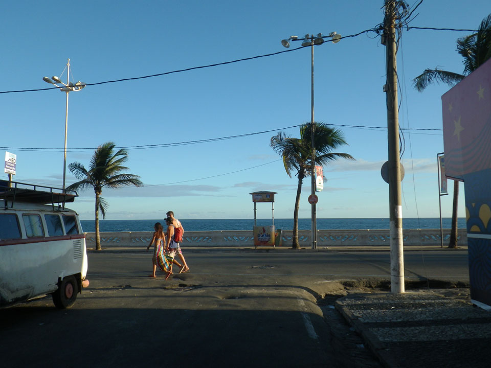 Die Pousada Acacia liegt ganz gut, mit meinem Zimmer war ich auch zufrieden. Superschnelles Internet brachte ein paar Erfolge. Ein Imbiss um die Ecke und zum Strand für die letzten Sonnenstrahlen. Salvador ist schon ganz nett. Baden und wieedr heim und wieder viel Netz. In einem Hostel hänge ich selten den ganzen Tag im Netz, im Privatzimmer hält einen niemand ab.