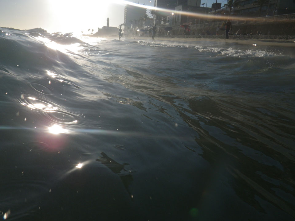 Durch zu wenig Sport im letzten Monat in Kälte mit Erkältung gibt’s Fettansatz am Bauch. Das ist unbequem doch da hilft nur besseres Essen und mehr Bewegung. Mit ein paar Bananen und Drinks ging ich zum Strand. Viel Bewegung gab’S da nicht. Ich hörte mal wieder in Pimsleur rein und badete im tollen Wasser. Schöne Wellen, angenehme Temperatur.