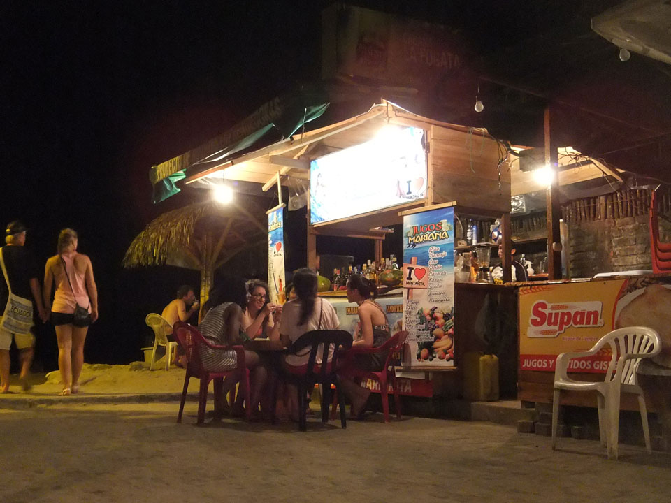 Viele kleine Cocktail-Stände bieten günstige Drinks um die $3.50 mit viel Alkohol an. Da sitzt man bei Musik, fast am Strand und alle sind happy. Ich bin auch glücklich, redete mit einem australischen Paar auf der gleichen Route. Sie wollen nach Peru ich will jemanden wohl doch lieber wieder nach Quito bringen.