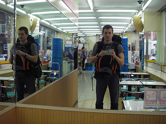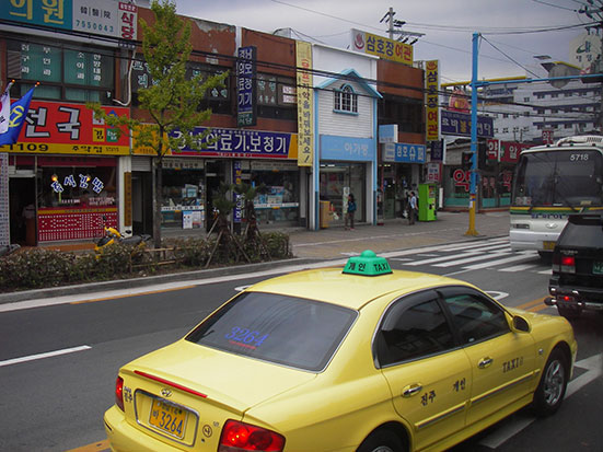 Wieder ein Taxi zum Bus-Terminal. Er lies mich ‚raus aber das sa ganz anders aus. Überall Neue Häuser, blinkende Motels und noch mehr. War ich hier richtig? Kaum. Ich ging raus, versicherte mich, dass ich falsch war. Wieder ein neues Taxi und suchte ein Bild auf der Digicam des Busbahnhofs. Er sagte was von „große Busse“, Nä (ja). Dann kam ich richtig an. Es scheint, als sprächen manche älteren Koreaner mehr Deutsch als English. Scheinbar bissel Verwandschaft in Deustchland oder wenigstens Austauschstudenten.