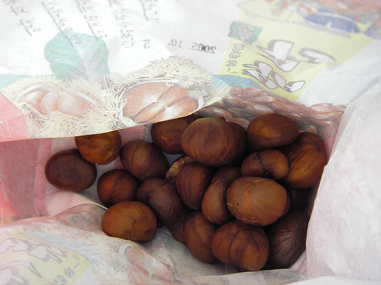 Die Busfahrt nach Jinju dauerte um die 2 1/2h. Bei einem Zwischenstopp holte ich sowas, wie ’nen Hotdog (ohne Wurst). Dann gab’s noch ein paar süße Kastanien, die ich dann im Bus verdrückte.