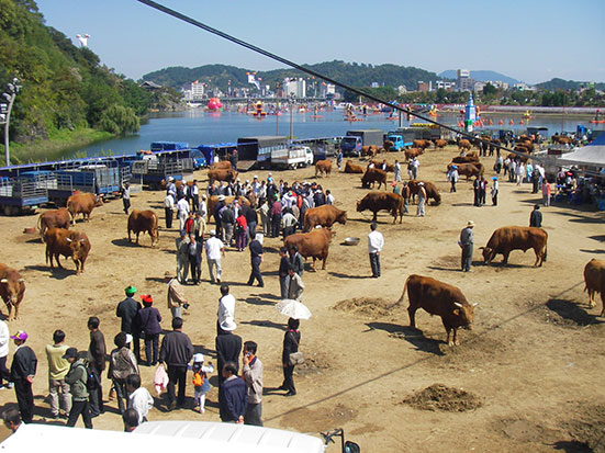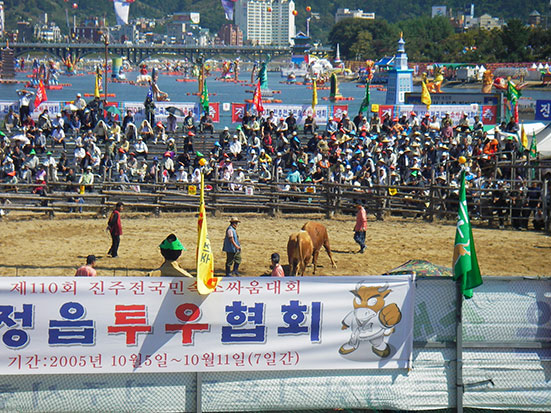 Bevor ich nach Busan aufbracht, wollte ich noch den Stierfkampf in der Stadt sehen. Mein Gepäck konnte ich nirgend verstauen – keine Schließfächer. Ich hatte aus gutem Grund nochmal mein Barcelona T-Shirt mit dem Stier drauf. Darauf zeigte ich, der Fahrer wusste damit Bescheid. Stierkampf tat dort den Tieren wenig weh. Es war nicht etwa ein Torrero im Areal sondern die Tiere kämpften unter Anfeuerung nur gegeneinander. Wie eben Hirsche verhakten sich die Man-Kühe bissel am Kopf, bis einer der beiden reißaus nahm und damit „verlor“.