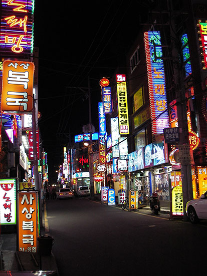 Bei Lotteria, einer koreanischen Mc Donalds Version orderte ich ein Kimchi-Burger Menü. Motels standen genügend herum. Eins fiel auf, das in hohen Etagen gleich über einem Internet-Café trohnte. Erst im September aufgemacht also hoch mit dem Fahrstuhl in die 7te.