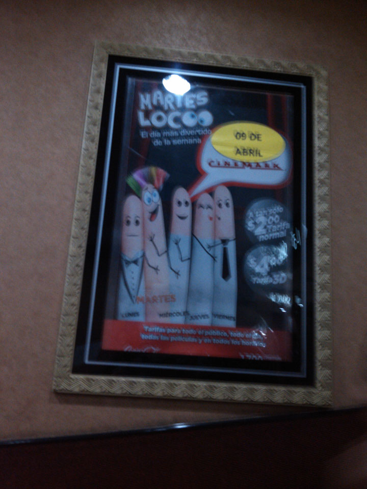 Die Entscheidung bei dem Wetter zeigte auf Kino. So fuhren wir mit dem Taxi zum Plaza de las Américas und dem Cinemark Kino. Jemand mag „Terror“ Filme – also Horror. Das Canaña del Terror Stück spielte erst später – Les Misérables fing gleich an. Ich hatte irgendwie gehört, dass der gut sein sollte und so waren wir dann in dem. Mit Nachos und Popcorn bewaffnet staunte ich nicht schlecht als das Singen anfing. Das war das Musical und selbst Russel Crowe sang fleißig mit.
