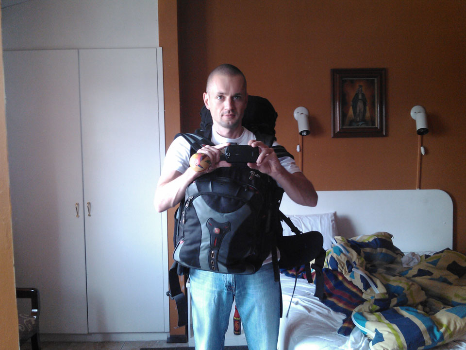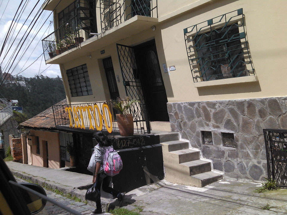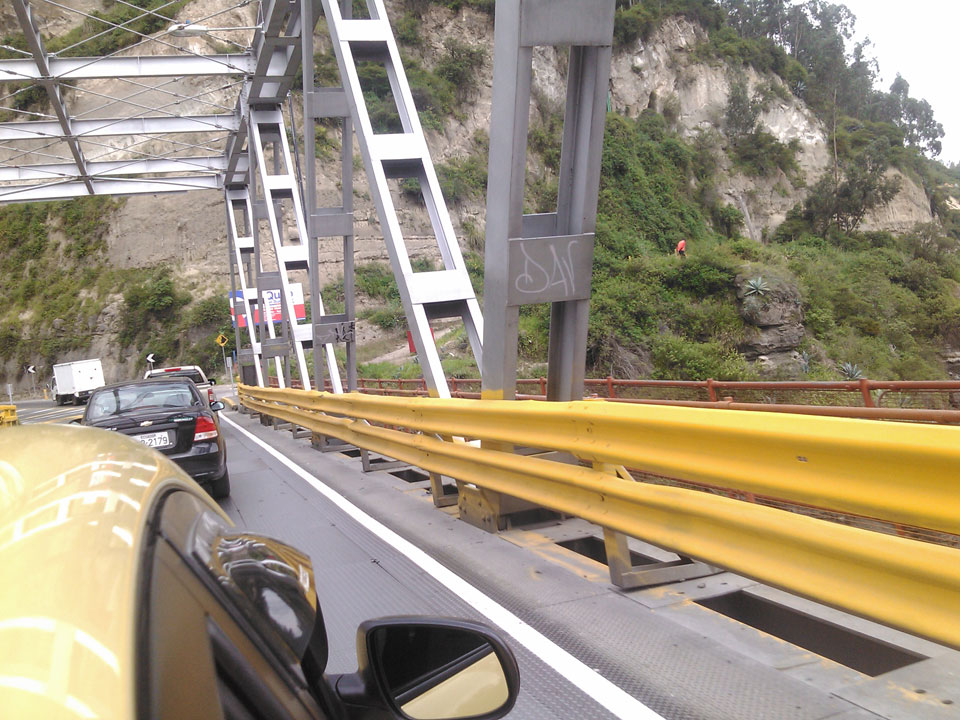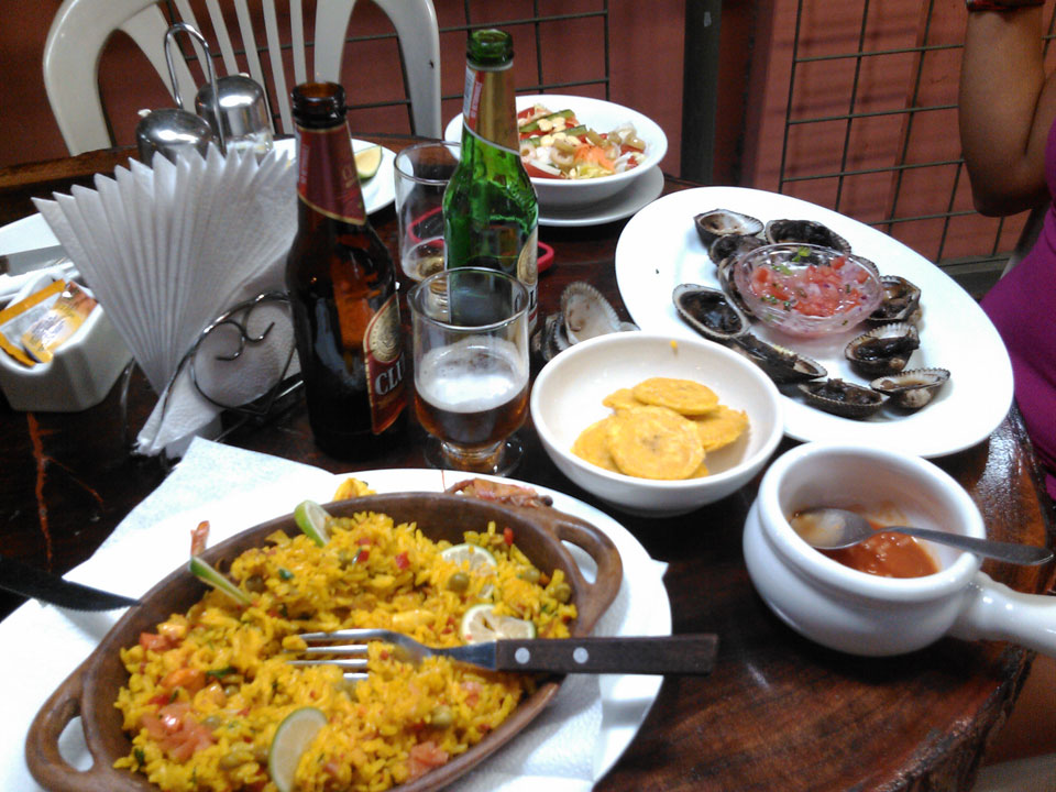 Im Este Café vertrödelten wir eine Stunde. Ich guckte nach den Hotels in Manta, schrieb emails. Dann um 13:00 war die Zeit reif, bis zum Flughafen ist’s ja nun weit. Jemand empfahl den Bus. Mit meinem großen Rucksack also zur Haltestelle. Da warteten wir und warteten. Busse kamen aber nicht die richtigen.