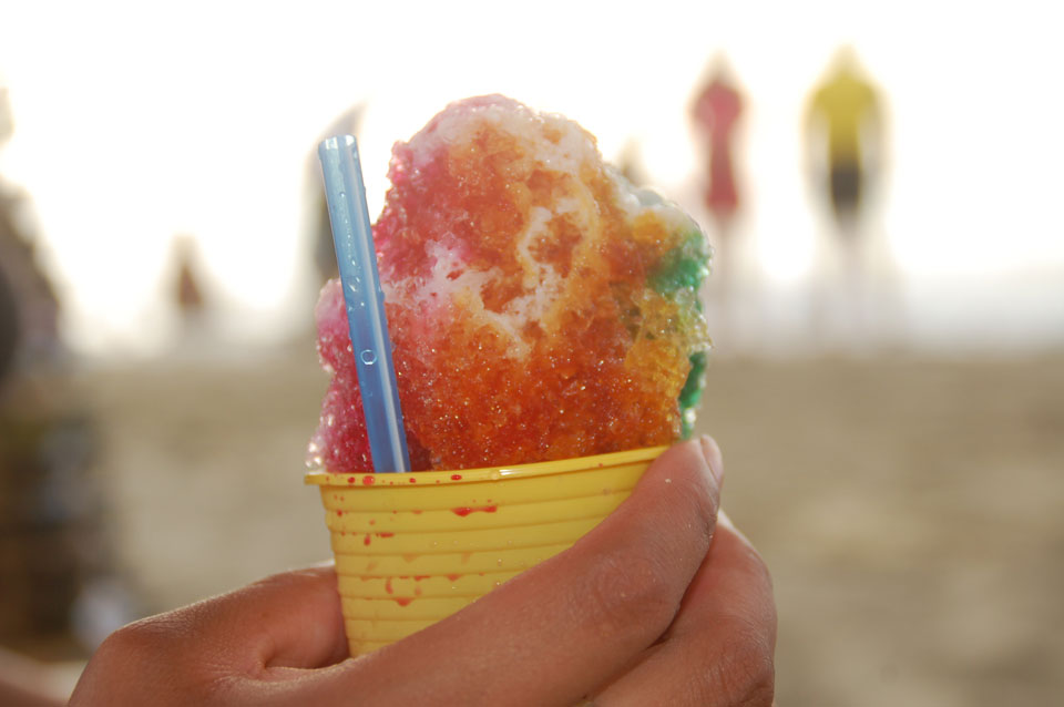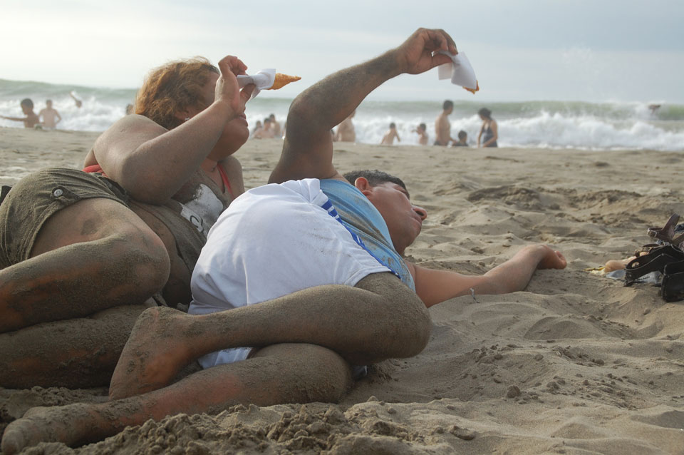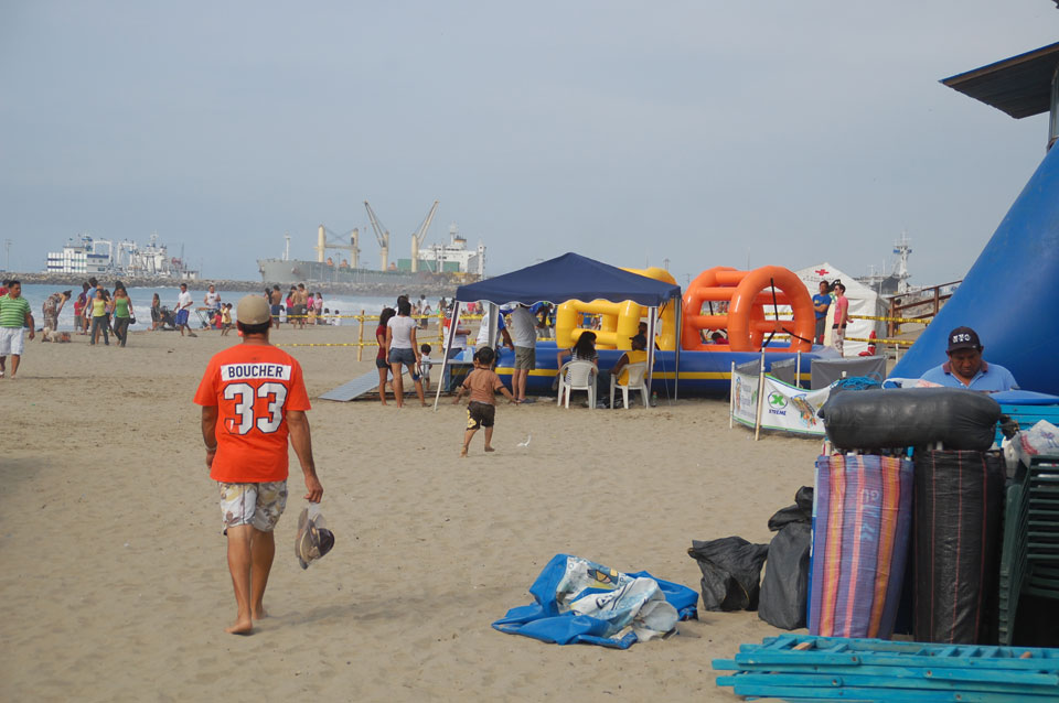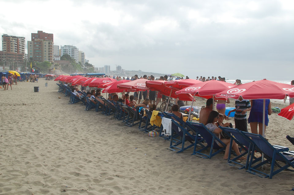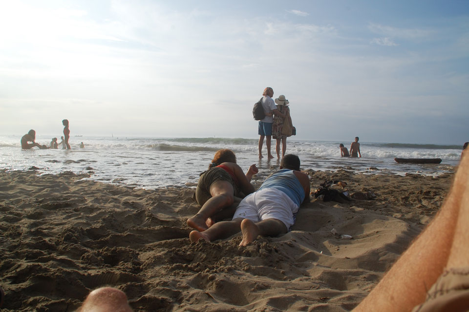 Am Wasser war mehr los. Wir nahmen uns Liegestühle, die mit Schirm hier als Set nur $3 kosten. Leider ohne Badehose blieb’s beim Gucken.