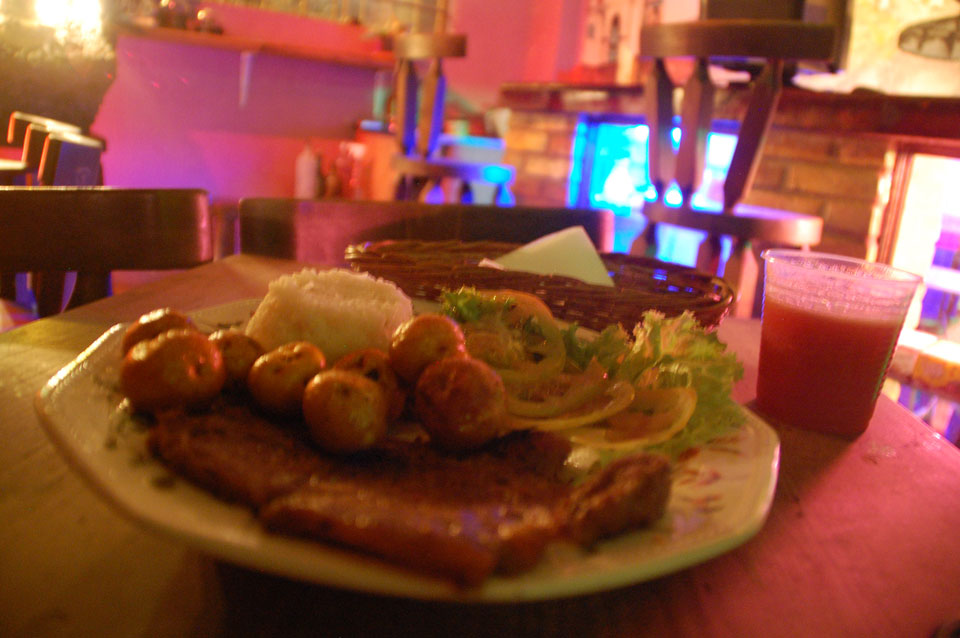 Dann checkte ich aus, ging zum empfohlenen „Shada“ Restaurant um die Ecke. Dort gab’s für COP 9.000 ein Steak mit Saft – 10K und mit dem Taxi nochmal 19K auf El Dorado um 21:00. Ich hatte so noch etwas Cash und Zeit übrig. Leider klappte es hier nicht mit dem Treffen zu einem Web-Projekt. Ich hoffe, dass das dennoch stattfindet.