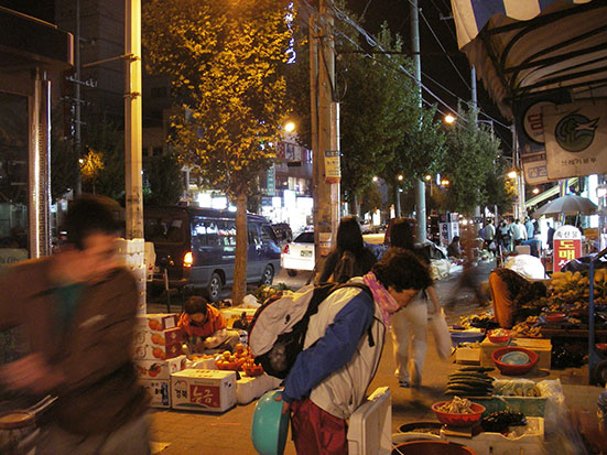 In Downtwown aß ich hier und da was. Ein paar Dumplings waren gut, dann vergriff ich mich ins unexperimentelle Streetfood mit einem Hotdog und Fleischspieß. Weiter durch die Straßen. Es schien mir alles in etwa so groß wie Jeonju. Merkte aber, dass hier mehr vom Tourismus gezehrt wird.