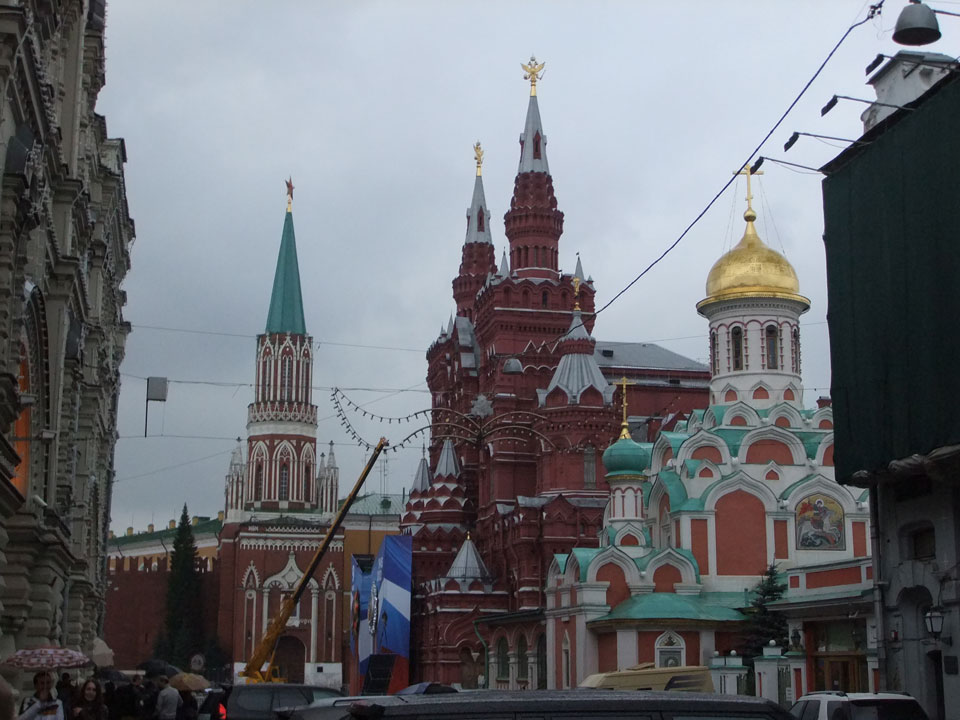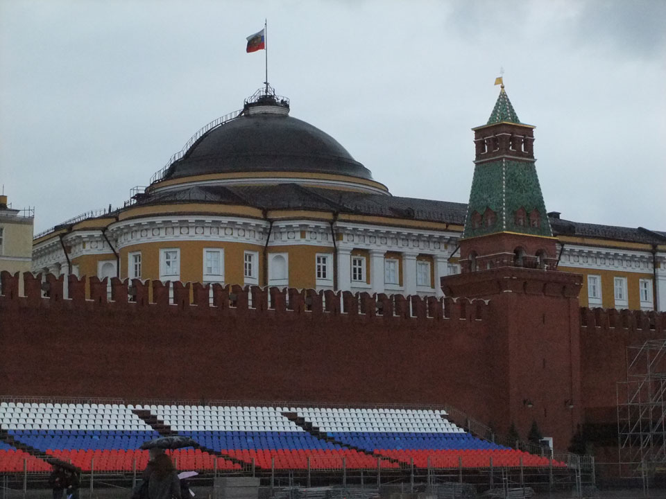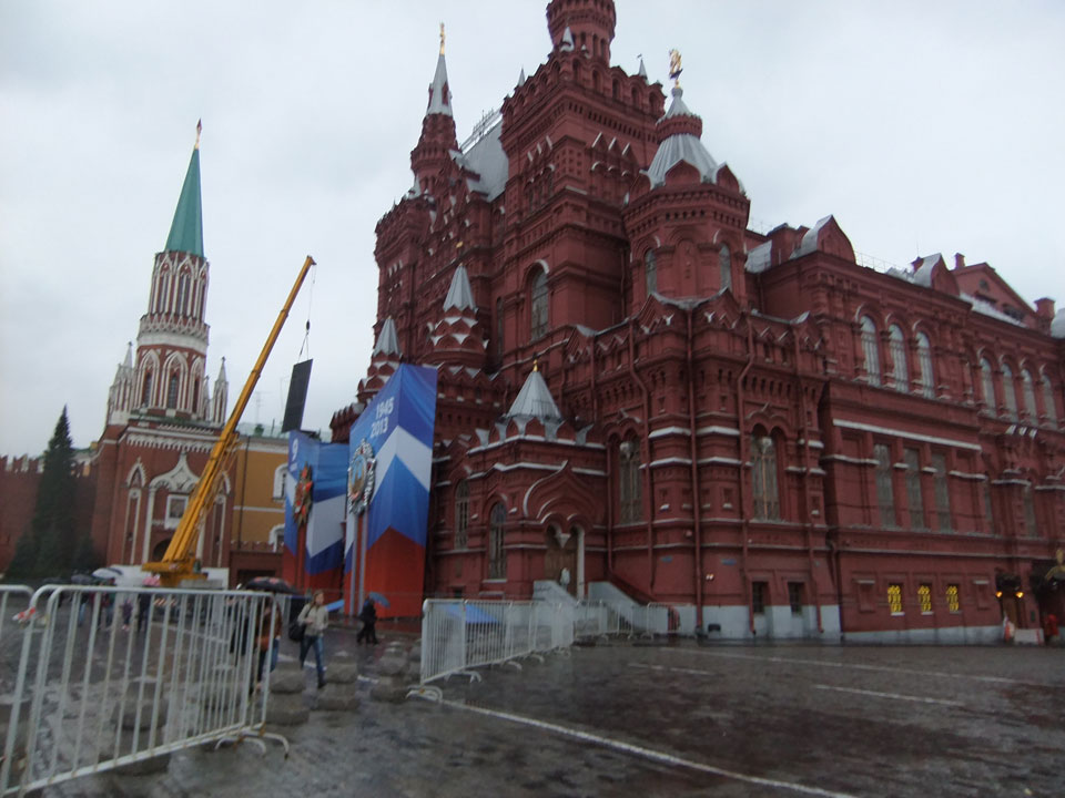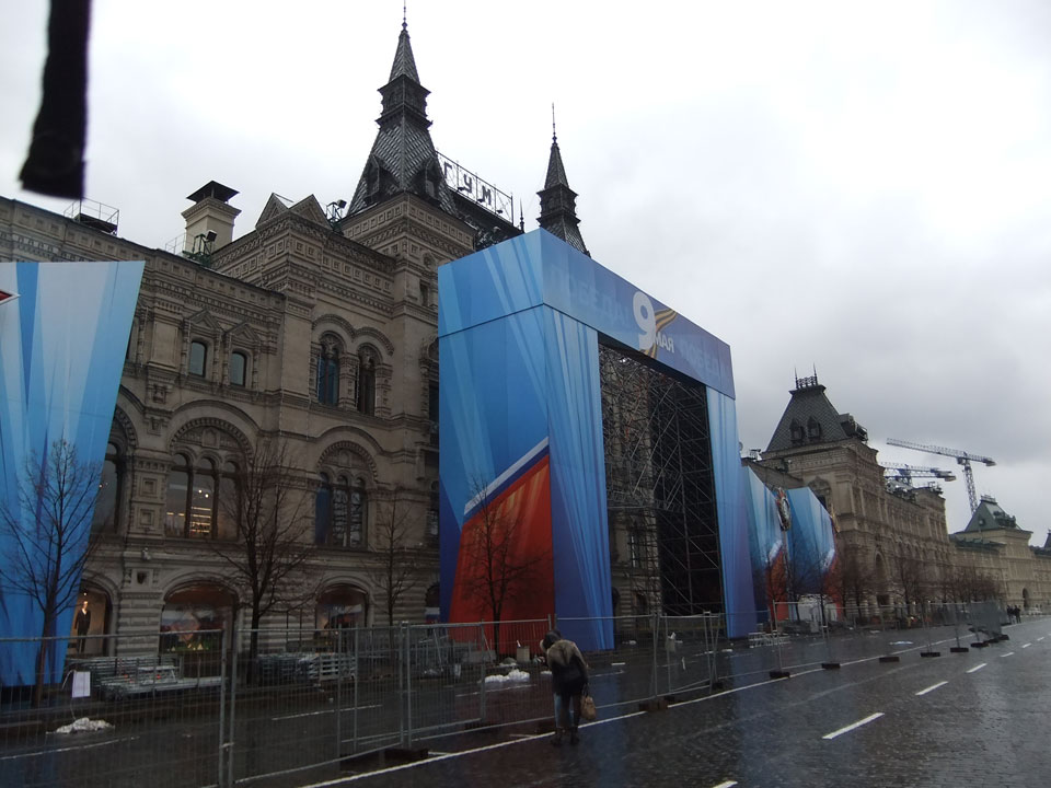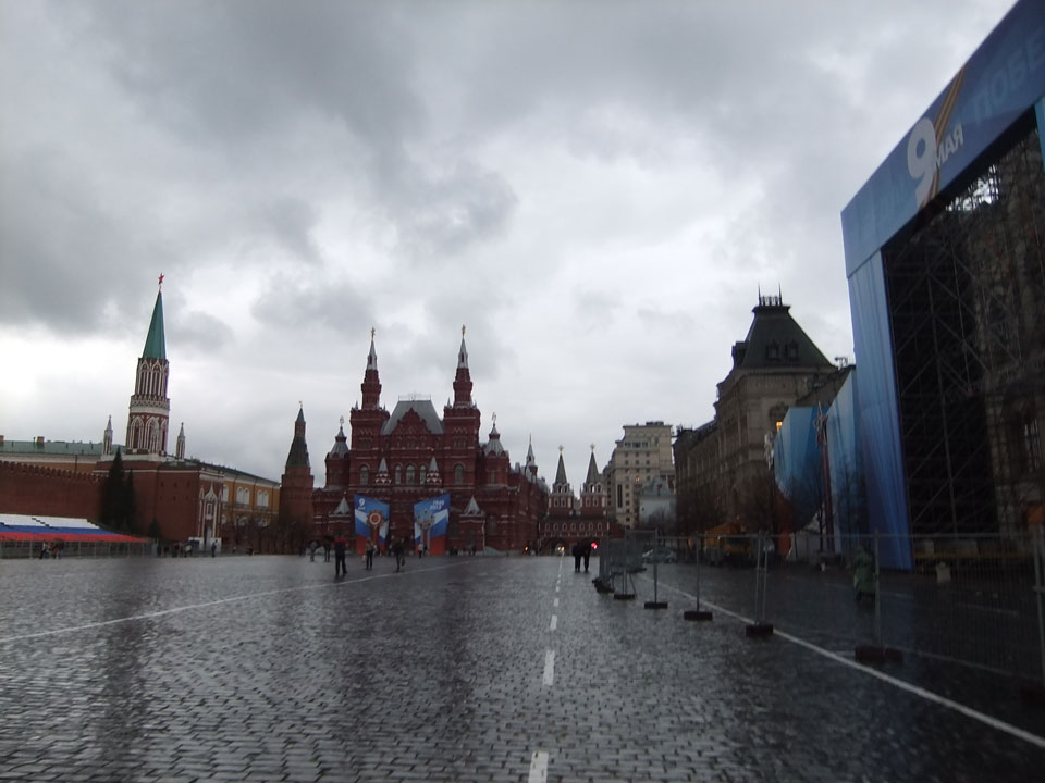 Wir fuhren mit der Metro Richtung Roter Platz. Das Wetter regnerisch und entsprechend waren wenig Leute draußen. Es war aber trotzdem mal gut, wieder hier zu sein. Für den 1. und 9.Mai wurden schon Tribünen aufgebaut, diverse Plakate aufgehangen. In ein paar Tagen wird Russland wieder dem Militär huldigen. Irgendwann klappt’s vielleicht, dass ich das auch mal anschaue.
