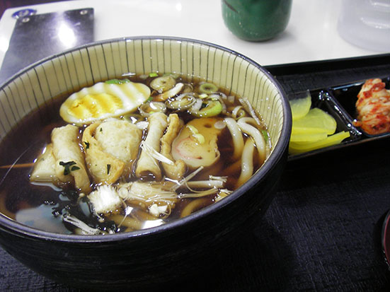 In der Stadt dann unterwegs suchte ich ’ne Weile nach Essen. Es gibt einfach zu viel. Viele Sachen auch zum Selberbraten am Tisch. Ich wollte schnell was essen, nicht erst warten. Kook Kwan Udon wurden gereicht.