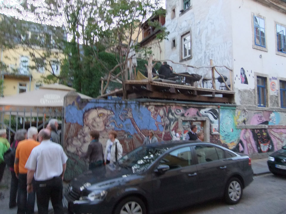 Wie bei Couchsurfing schlief ich auf einer Couch im Wohnzimmer. Das alleine wohnende Mädel war ganz nett, die Zimmer sauber. Schmunzeln musste ich über die Dusche in der Küche. Das war ein ähnliches Modell, wie wir sie auch im Büro hatten. Klo im Treppenhaus – Altbau eben. Für €20 / Nacht + €10 Putzgebühr und €7 AirBnB eigentlich gerade noch OK. An diesem Wochenende waren die Hostels ja fast teurer.