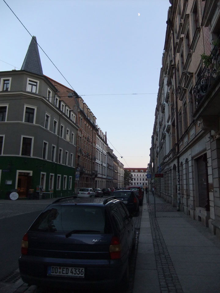 Nach Dresden Neustadt ging’s durch die schöne Landschaft. Dann dort einen Burger und per GPS zur Kamenzer Str.. meinem Zimmer. In einem Altbau rief ich erst die falsche Nummer an. Merke: bei AirBnB nicht die Telefonnummer kopieren sondern anklicken. In der Copy waren die Spaces mit „20“ eben umkodiert worden. Da ging das Telefonat an jemand anderen. Das klappte dann doch alles, auch wenn das Zimmer was anderes war, als ich erwartet hatte.