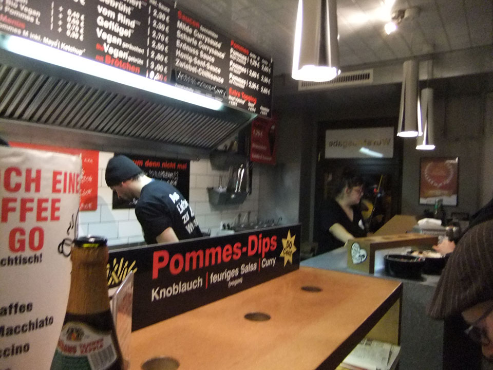Die Lage war gut und so ging ich dann auch los. Zuerst auf ’ne Currywurst bei Curry & Co. Dann mit der Bahn zum Kraftwerk Mitte. „Ibiza People“ hieß die Party. An Gogos hatten sie ganz schön was angekarrt. Die Stimmung war so lala, wie eben meistens in Deutschland. Musik war OK, Drinks auch, wenn auch sehr teuer für Osten aber naja. Besser als nichts – alles easy und mit der Nachtbahn wieder zurück – 4 Uhr.