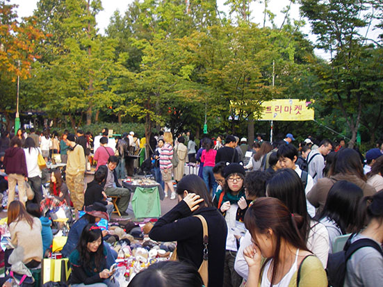 Zuerst ging ich wieder Richtung Hongkik Universtität. Dort sollte ein Flohmarkt sein. Zu Essen gab’s kalte scharfe Nudeln. Waren sehr gut und schwer zu kauen. Auf dem „Freemarket“ wollten viele Studenten(?) ihre selbstgebastelten Sachen verkaufen. Von Handtaschen, Mützen und T-Shirts gab es custom designs. Ein paar sangen auch ihre Musik. Viele Leute.