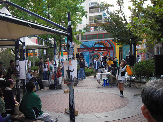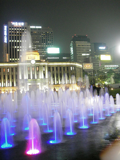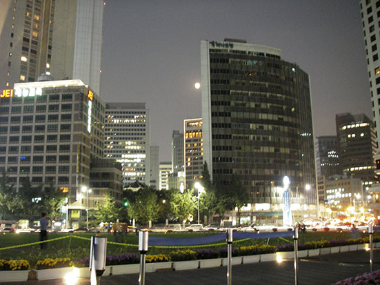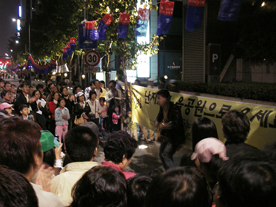 Inzwischen war es halb neun. Dann weiter mit der Linie1 Richtung Yongsan. An diesem futuristschen Bahnhof fand ich die Digital Mall auch gleich aber zum Samstag war Shopping nur bis 20:00 drin. Mir kamen also Scharen von Angestellten entgegen. Ich aß was und machte zurück zum Hostel, wo ich gegen 22:00 eintraf. Eigentlich hatte ich vor, wenigstens noch einen Club von innen zu sehen. Hier war es voll und ich kam doch mit ein paar Koreanern ins Gespräch. Engländer und Amrikaner waren auch hier. Die konnten mir ein paar Fragen beantworten.
