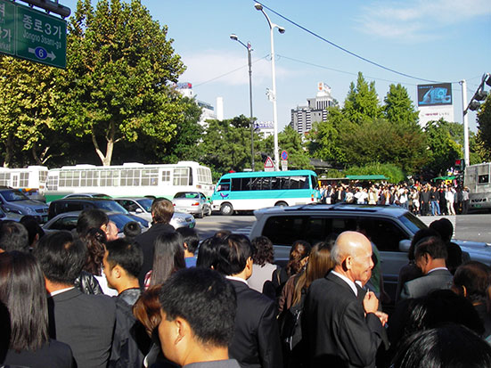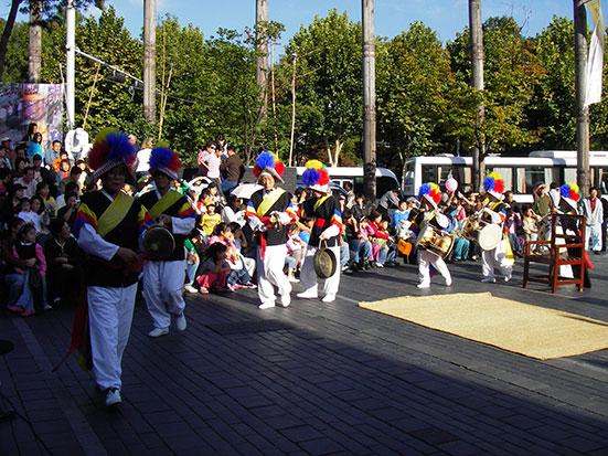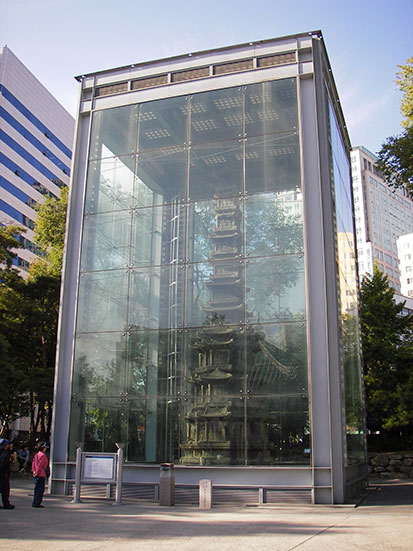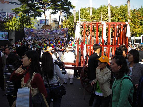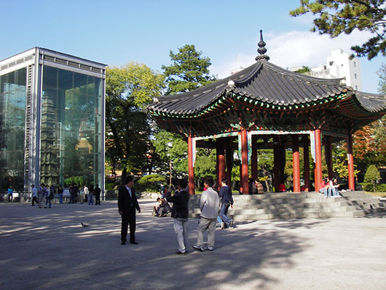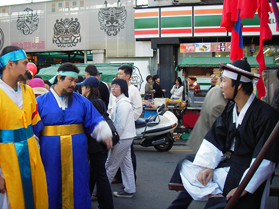 Heute besucht ich nochmal einige Sachen. Der National Treasure Nr. 2 war eine Pagode aus dem 15. Jahrhundert im schönen Park. In Insa-dong war Trubel mit Musik und vielen Touristen. Die erste Polizei machte Krach mit Trommeln. Viele Souvenirs, wie Kalligraphien, kann man hier kaufen.