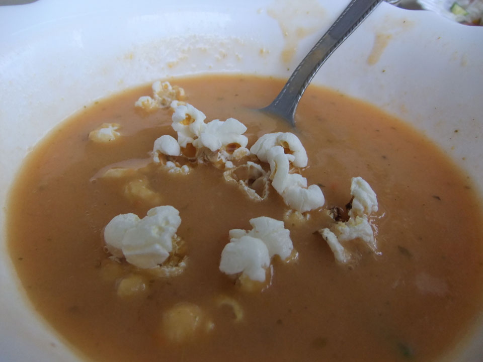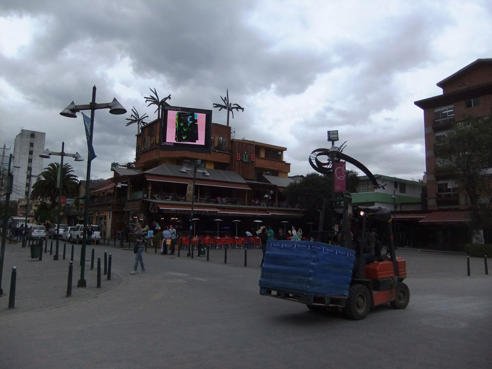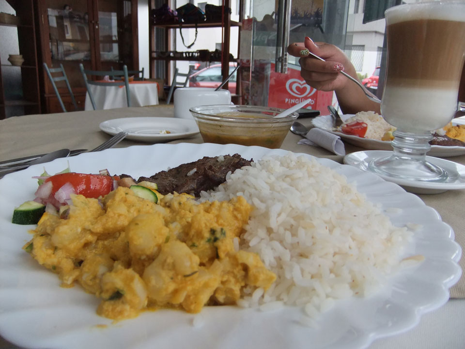 Nachmittags im Artesan Café Almuerzo. Die Tomatesuppe mit Popcorn sschmeckte gt, der REst auch – kein Postre. Danach zu Bank, jemand musste Uni bezahlen und dann mit dem Bus zum Supermaxi.
